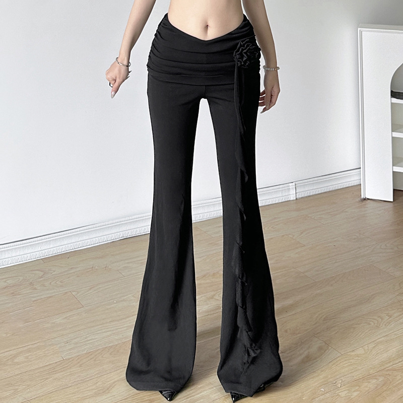 跨境欧美风夏季新款女装时尚百搭高腰宽腿褶皱带子装饰休闲裤
