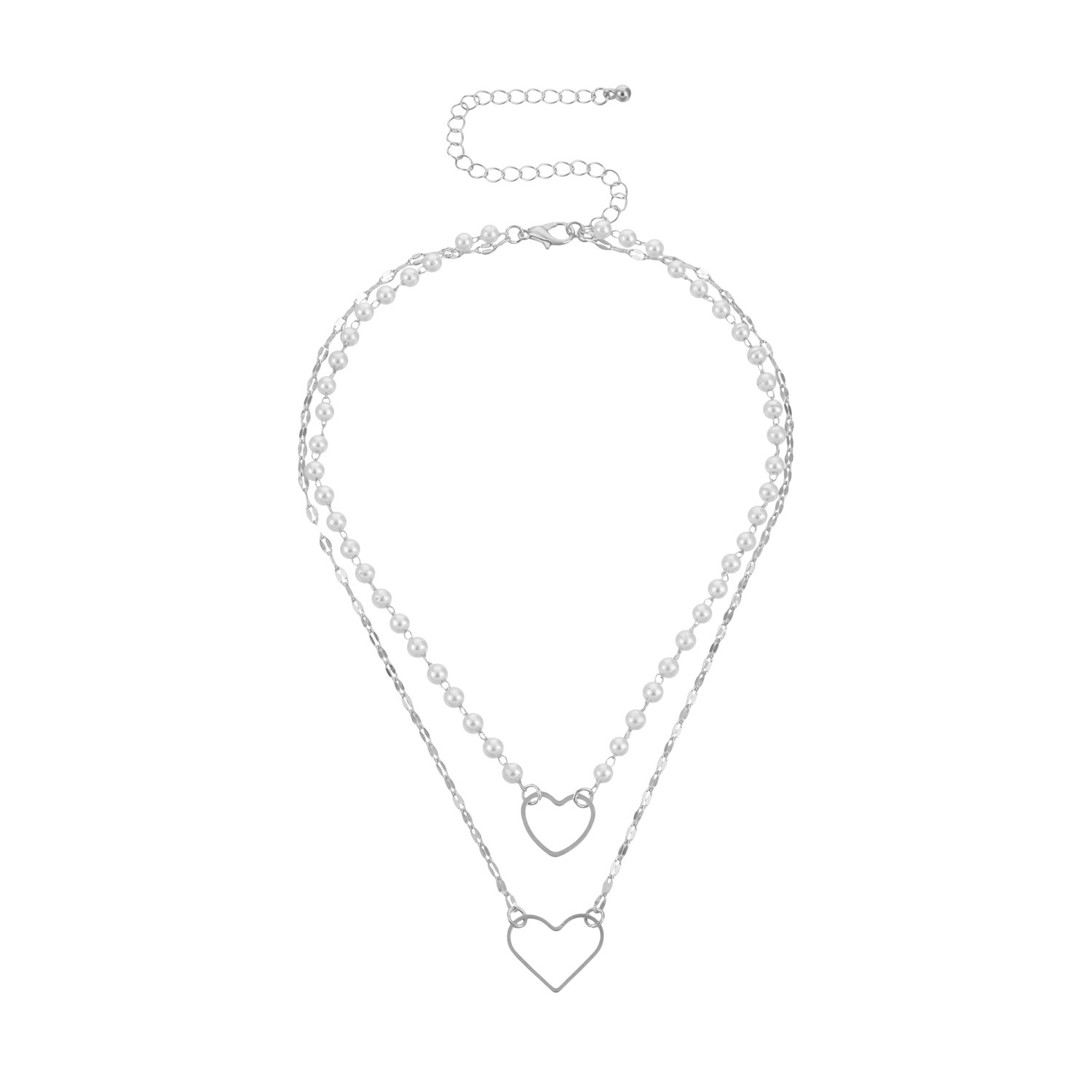 欧美跨境饰品 时尚心形吊坠潮流女项链 双层白色珍珠气质流行