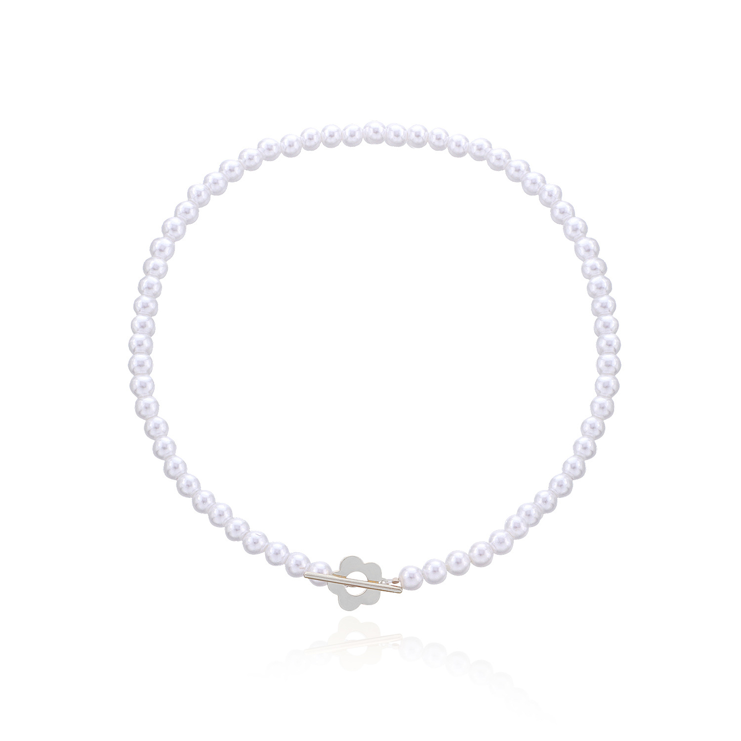 欧美跨境饰品 潮流简约ins短款珍珠锁骨链 气质时尚花朵OT扣项链