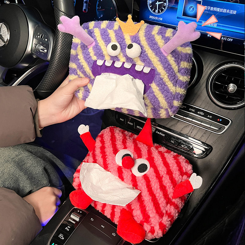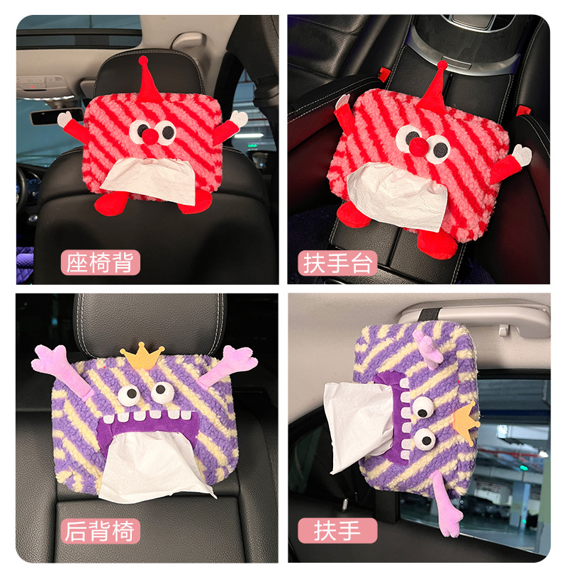 卡通可爱怪兽车载纸巾盒创意挂式汽车椅背挂袋车用抽纸盒内饰用品