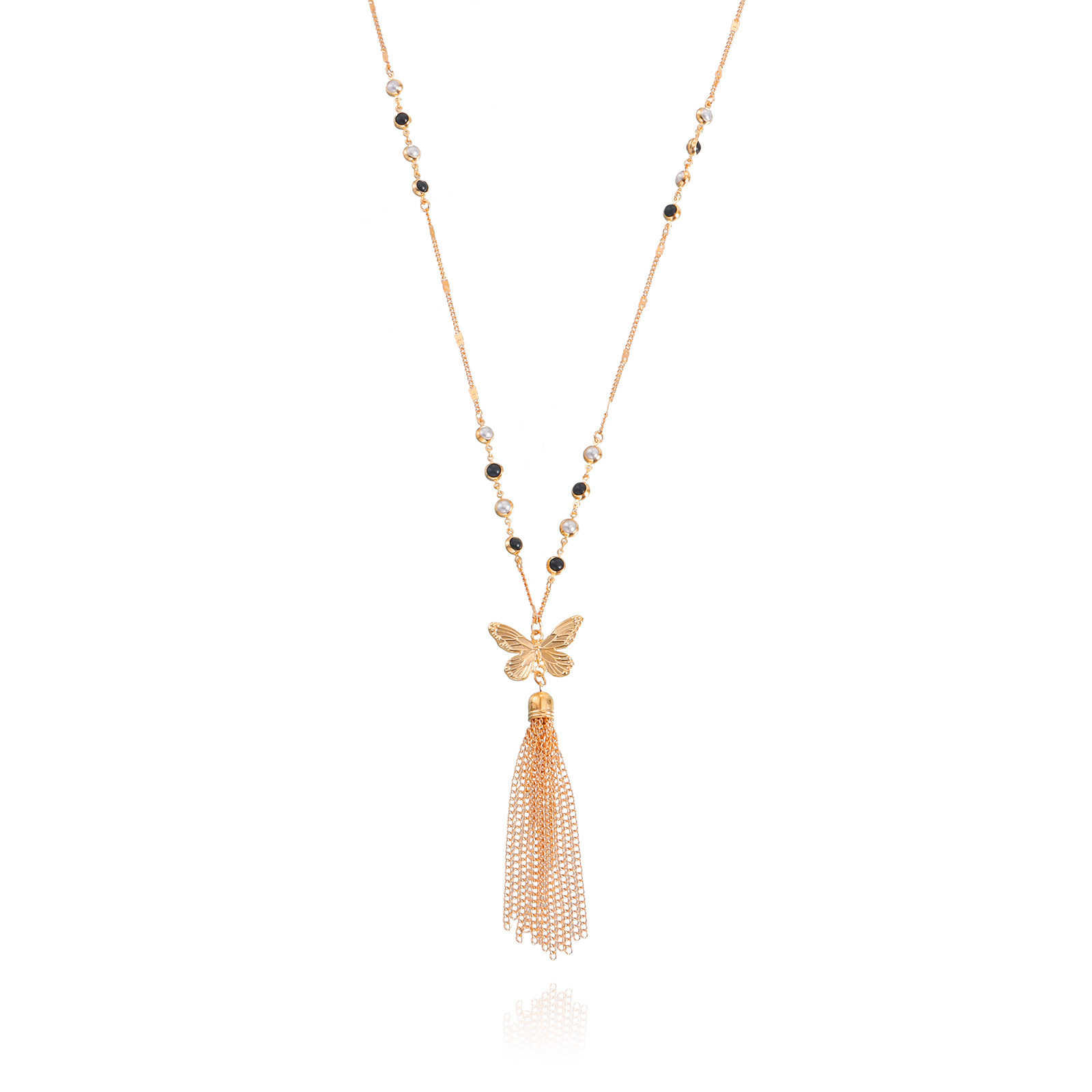 欧美流行饰品 冷淡风蝴蝶长款流苏项链女 秋冬小众设计锁骨毛衣链