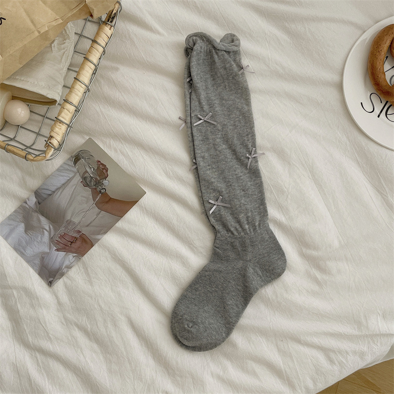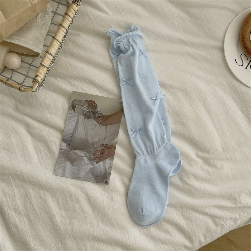 芭蕾风蝴蝶结jk洛丽塔袜子女过膝白色小腿纯欲堆堆袜夏天无骨袜
