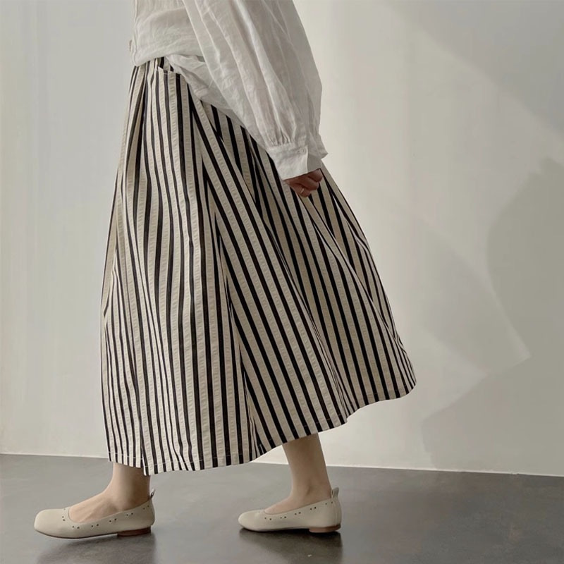 韩系复古条纹肌理感棉麻半身裙女2025夏款高腰显瘦垂感a字伞裙