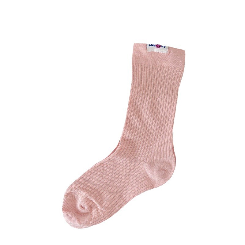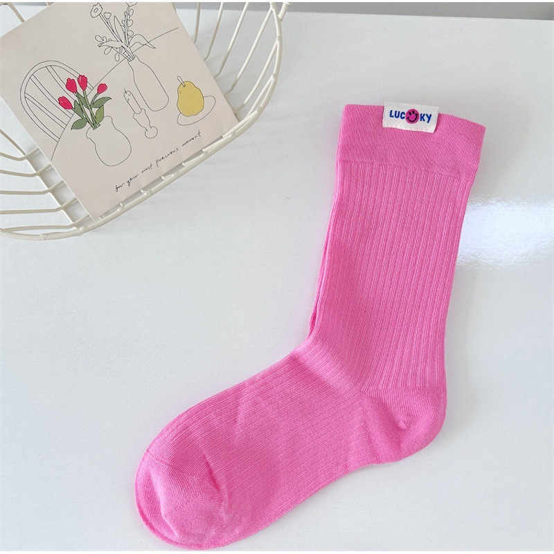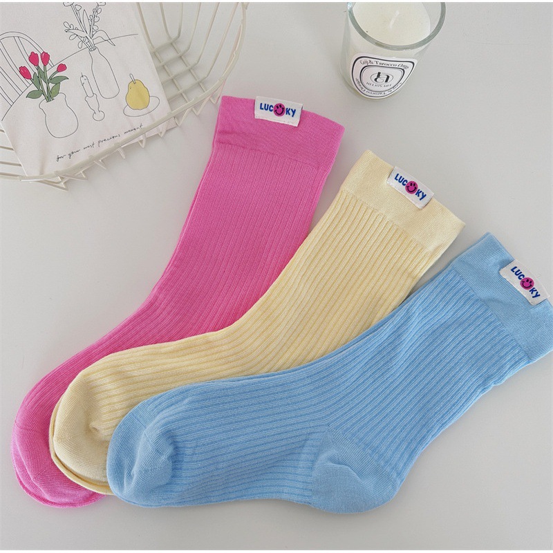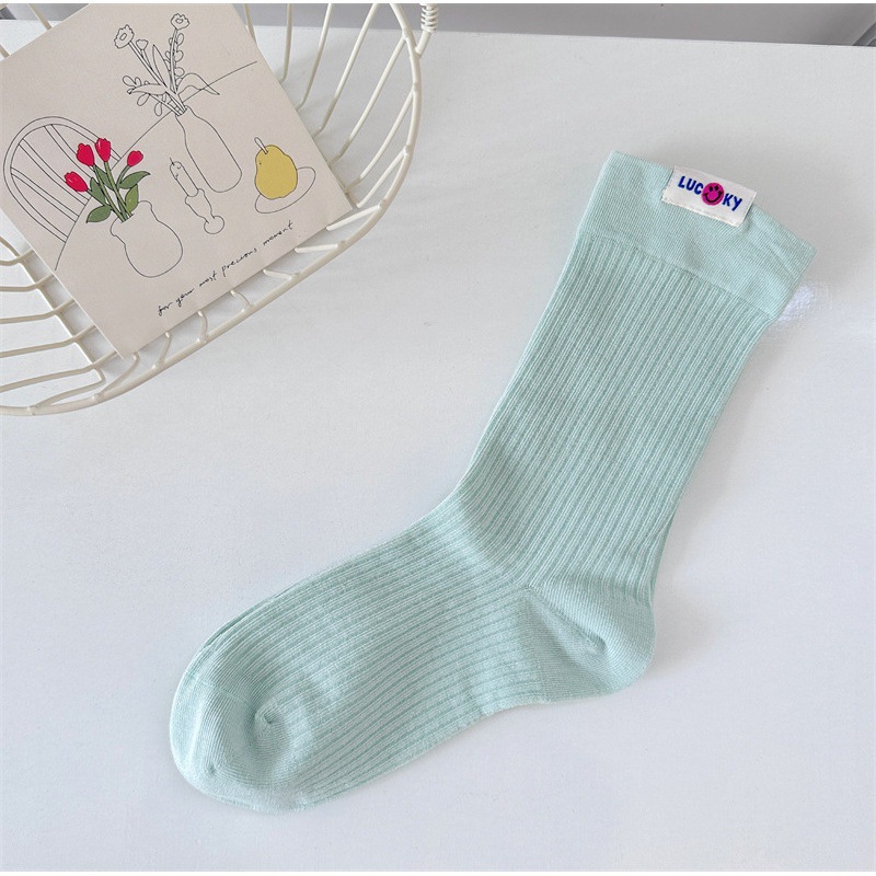 春夏新款ins男女袜笑脸中筒袜布标女士堆堆竖条纯色日系