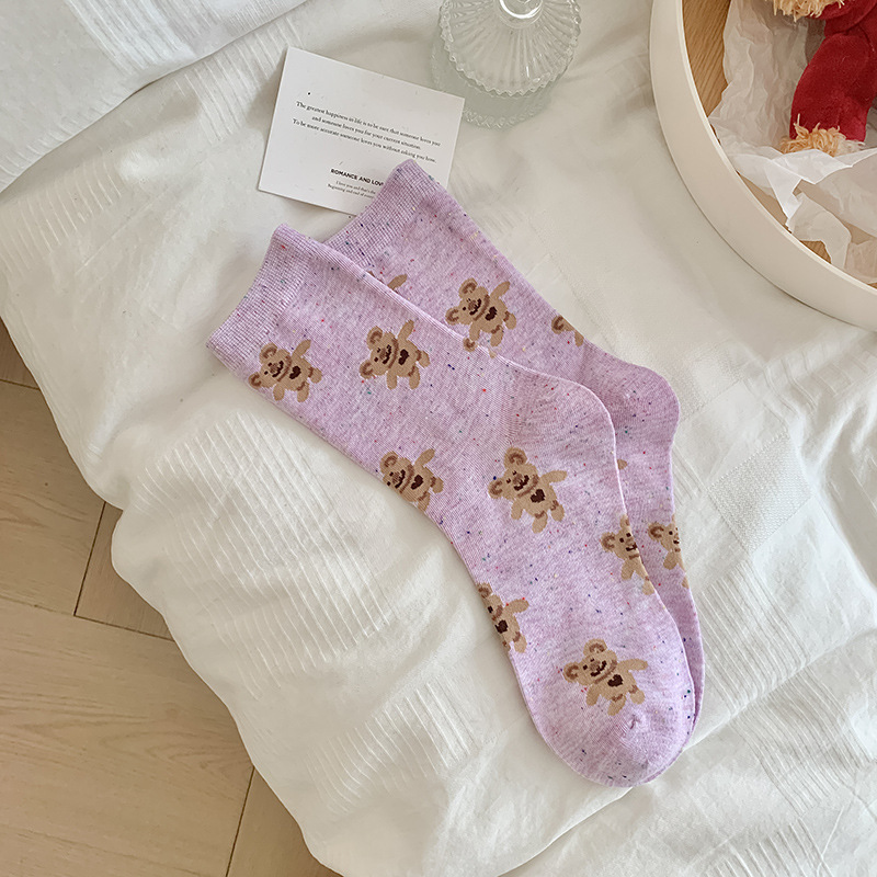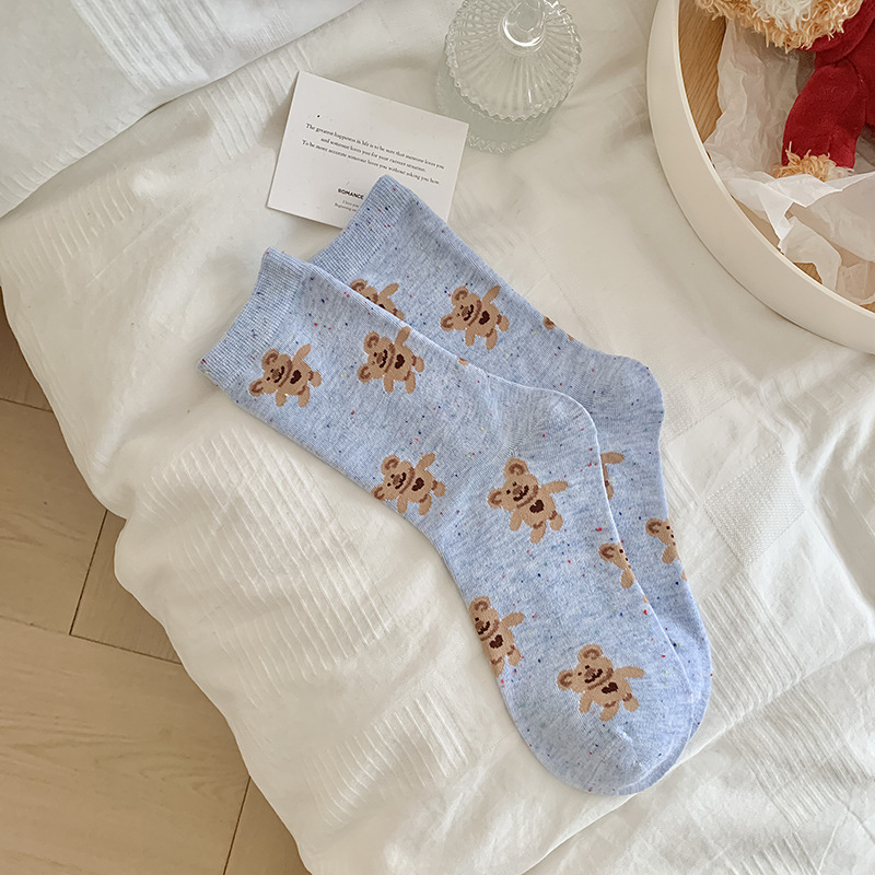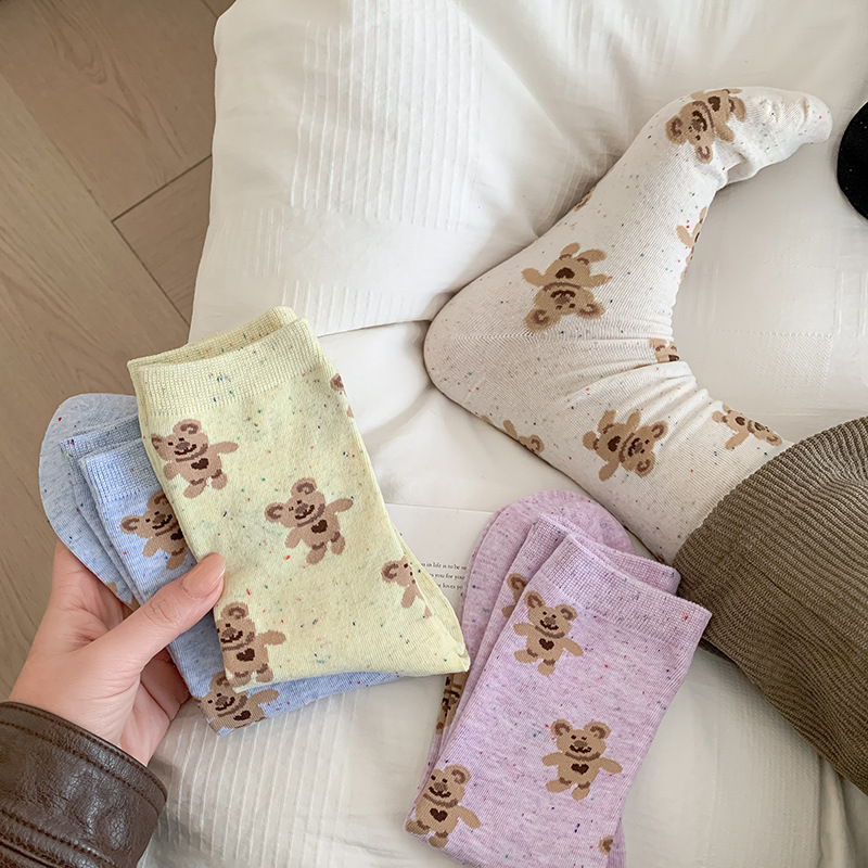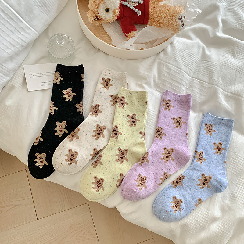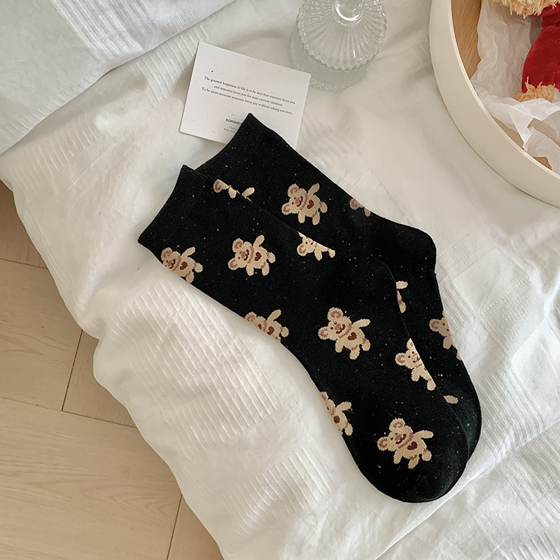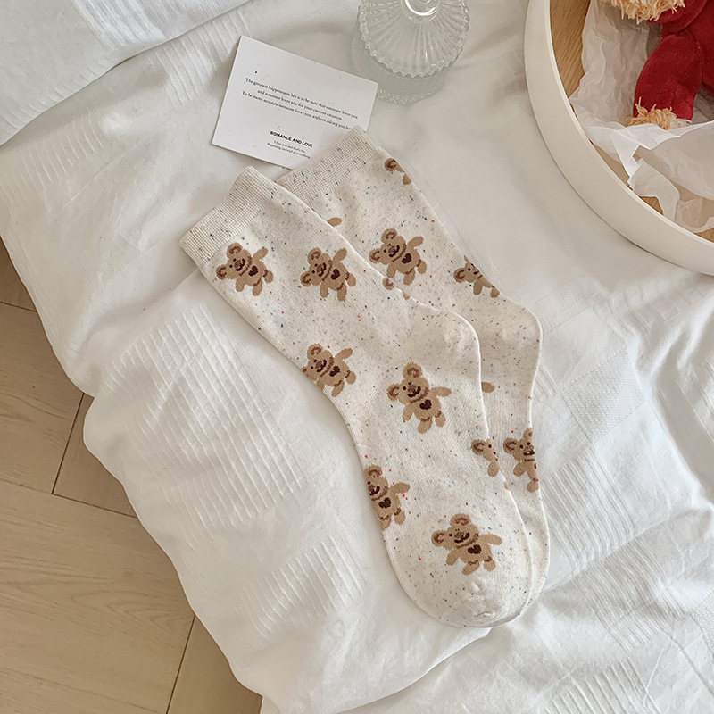 可爱卡通小熊袜子女中筒袜春秋ins潮日系小众设计感无骨网红女袜
