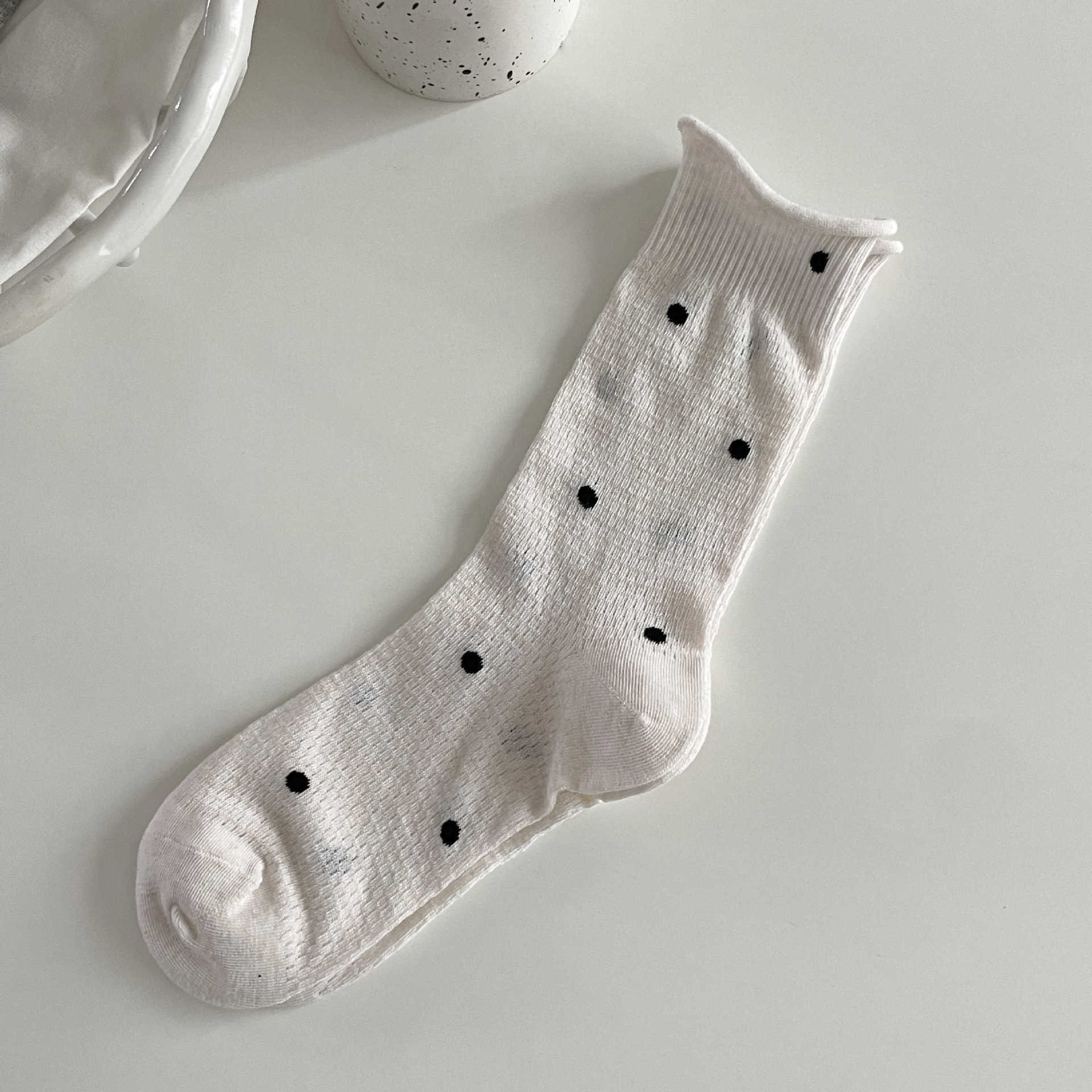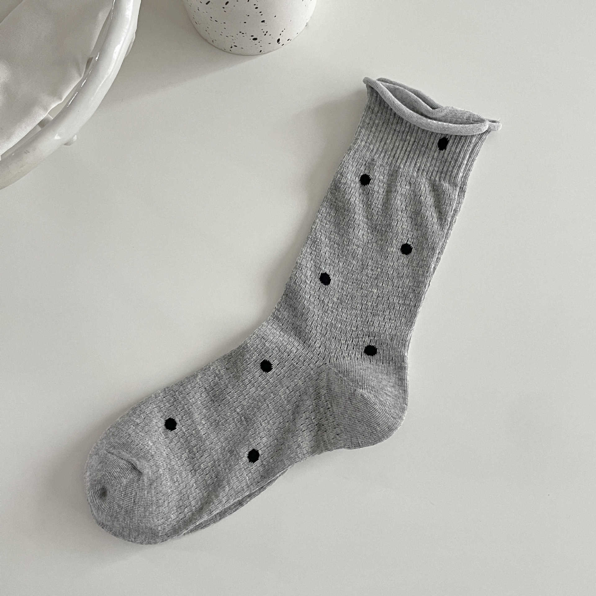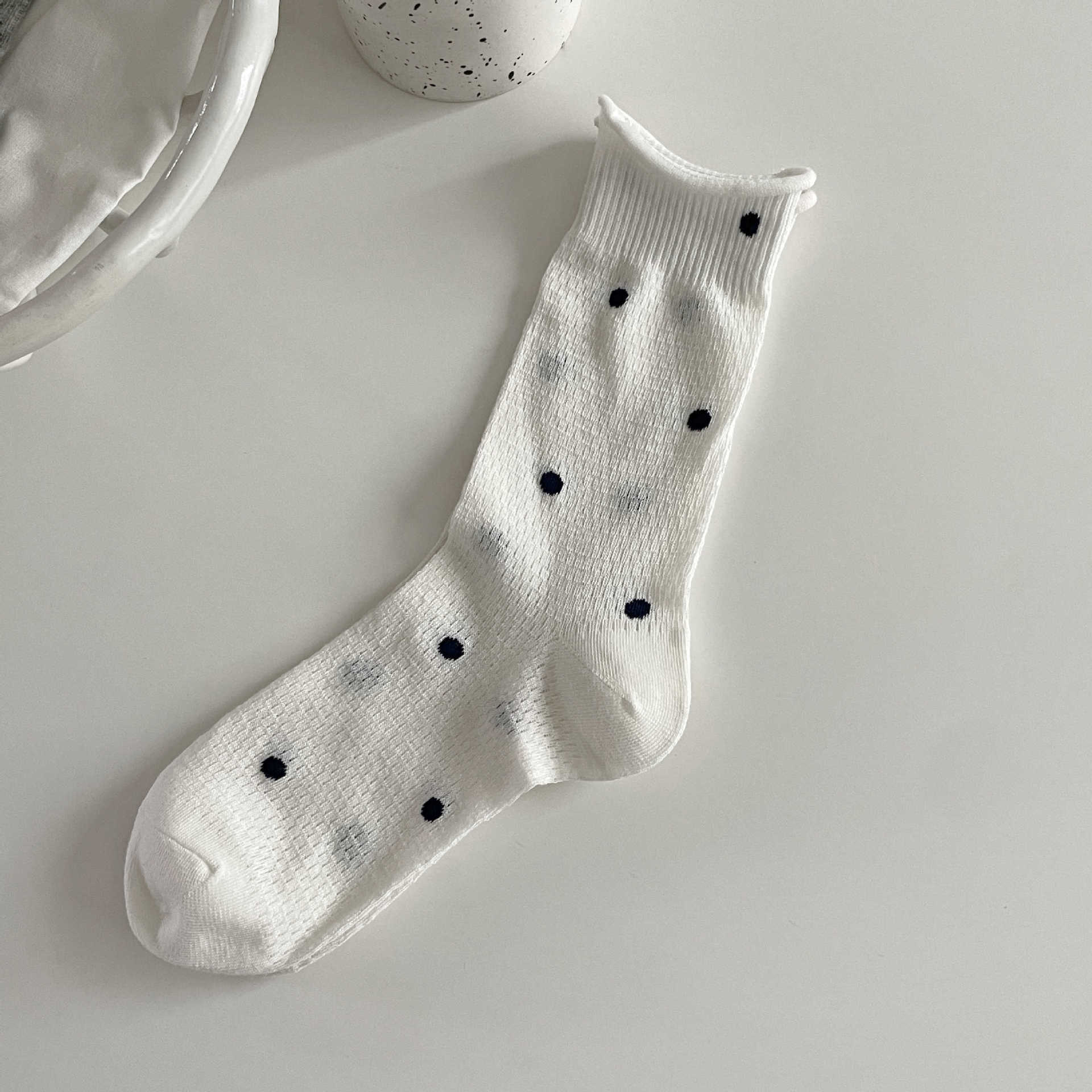 波点袜子女中筒袜ins潮夏季薄款棉日系学生网眼透气卷边堆堆长袜