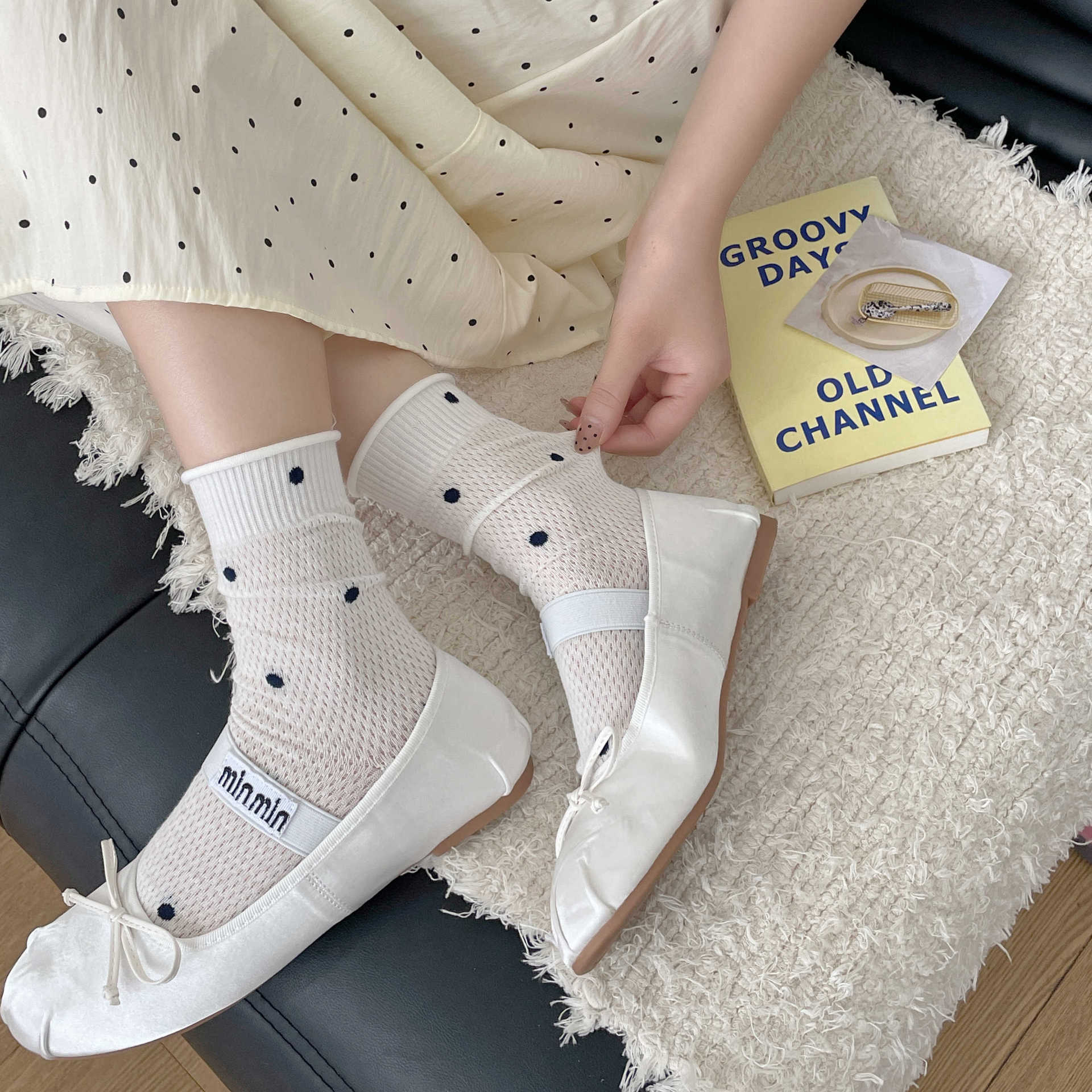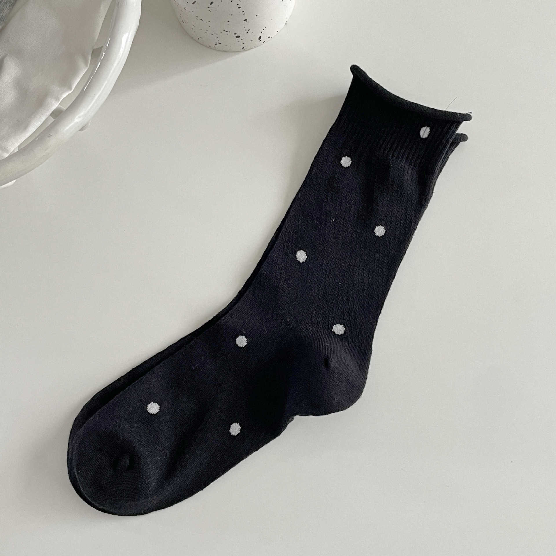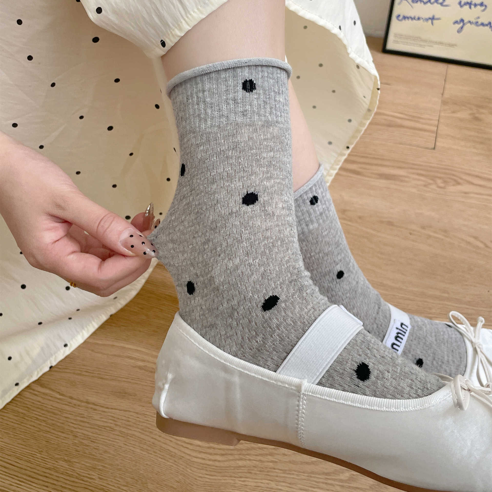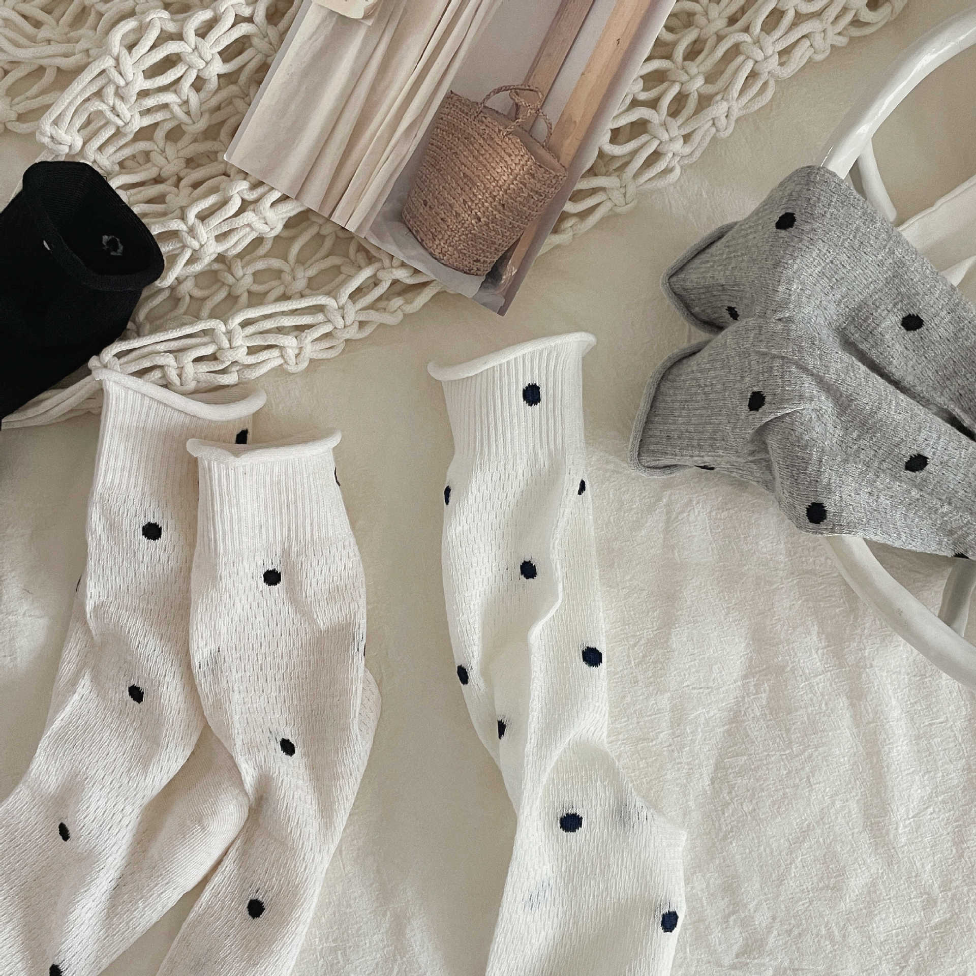 波点袜子女中筒袜ins潮夏季薄款棉日系学生网眼透气卷边堆堆长袜