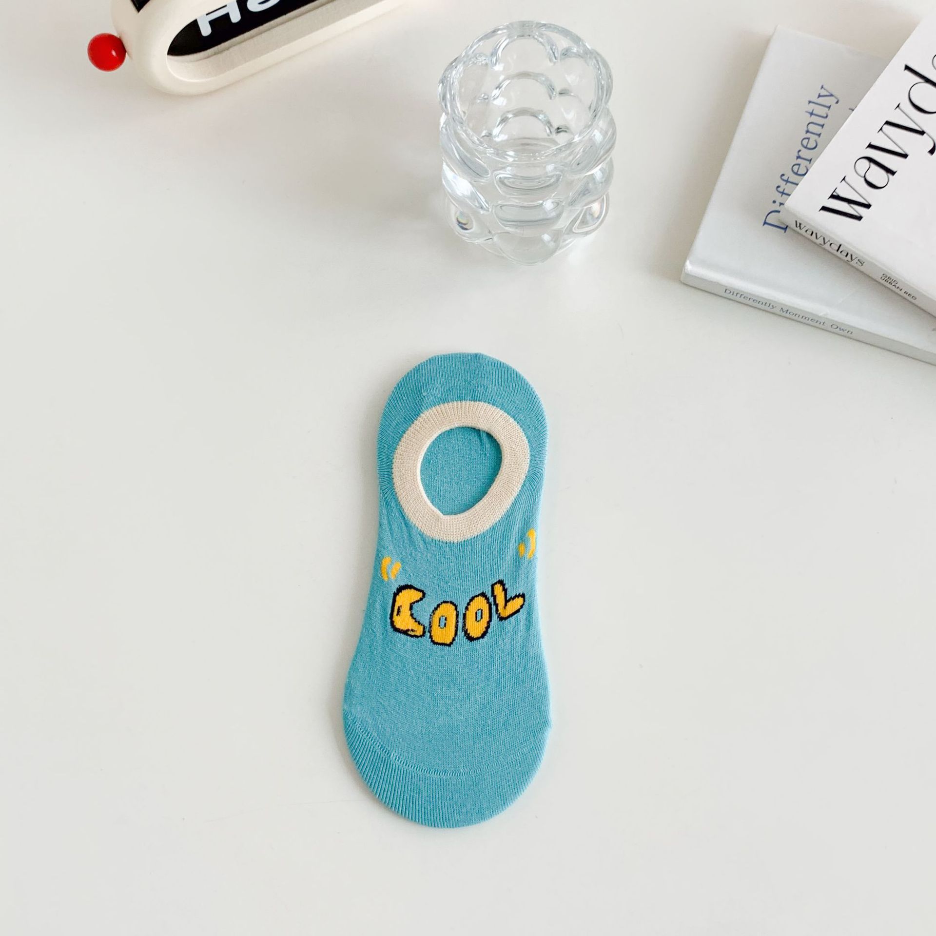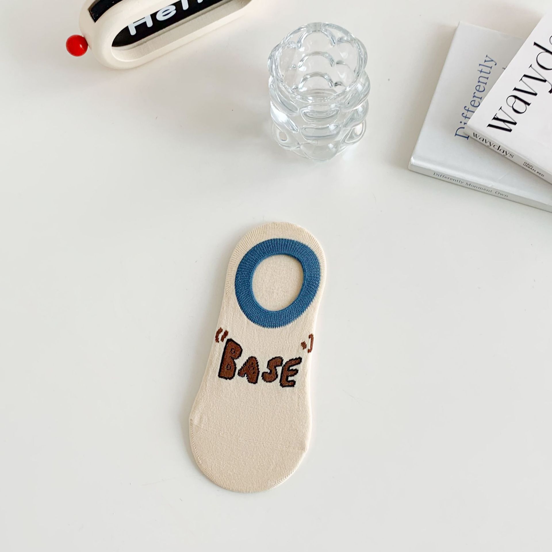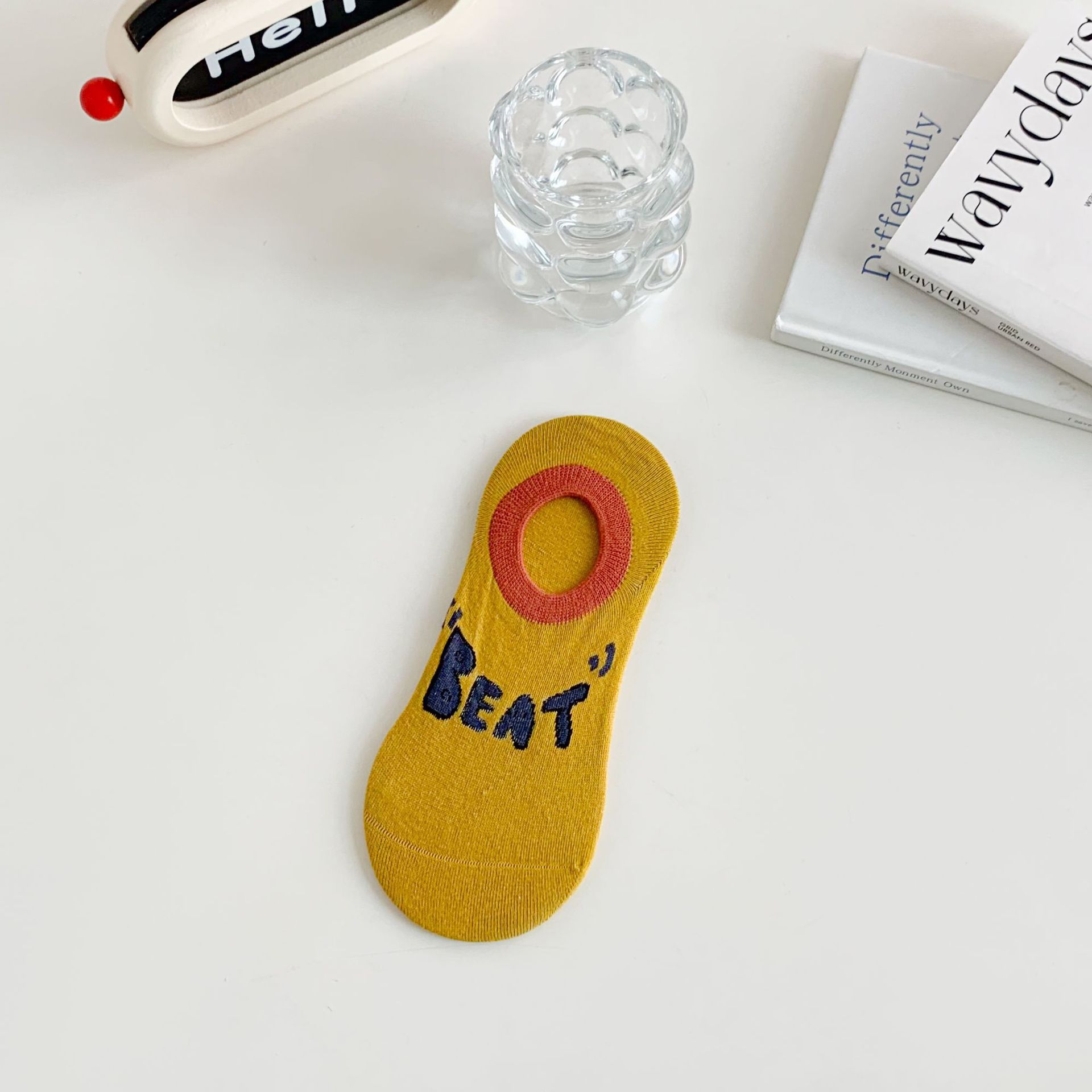 郁金香花朵船袜女~拼色少女后跟防滑点胶隐形袜字母短袜无骨潮袜