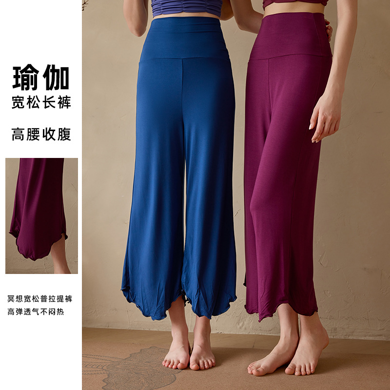 新款空气宽松瑜伽裤内观流春夏冥想阔腿裤普拉提九分裤纯色运动裤