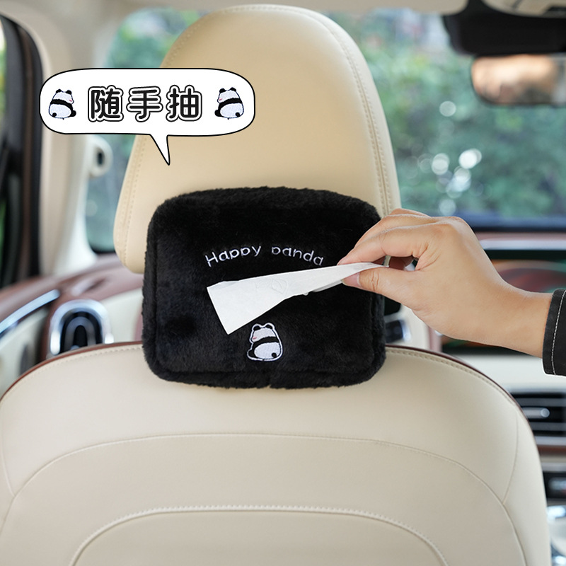卡通熊猫汽车纸巾盒多功能车用椅背收纳抽纸盒可爱通用车载纸巾盒