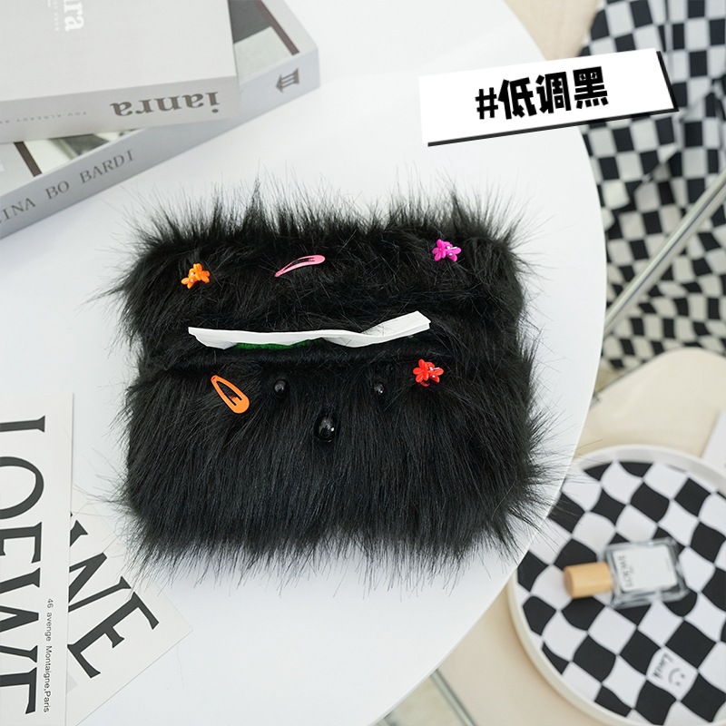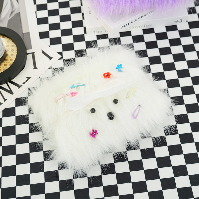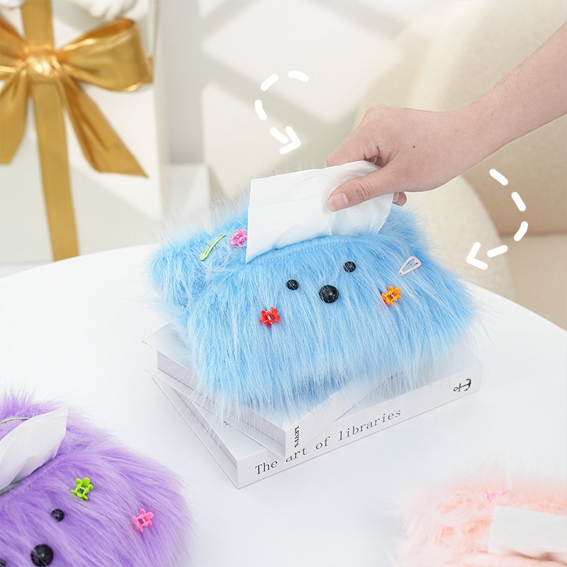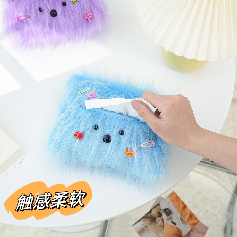 多巴胺长毛汽车纸巾盒 高颜值ins风纸巾袋客厅简约装饰车用抽纸盒