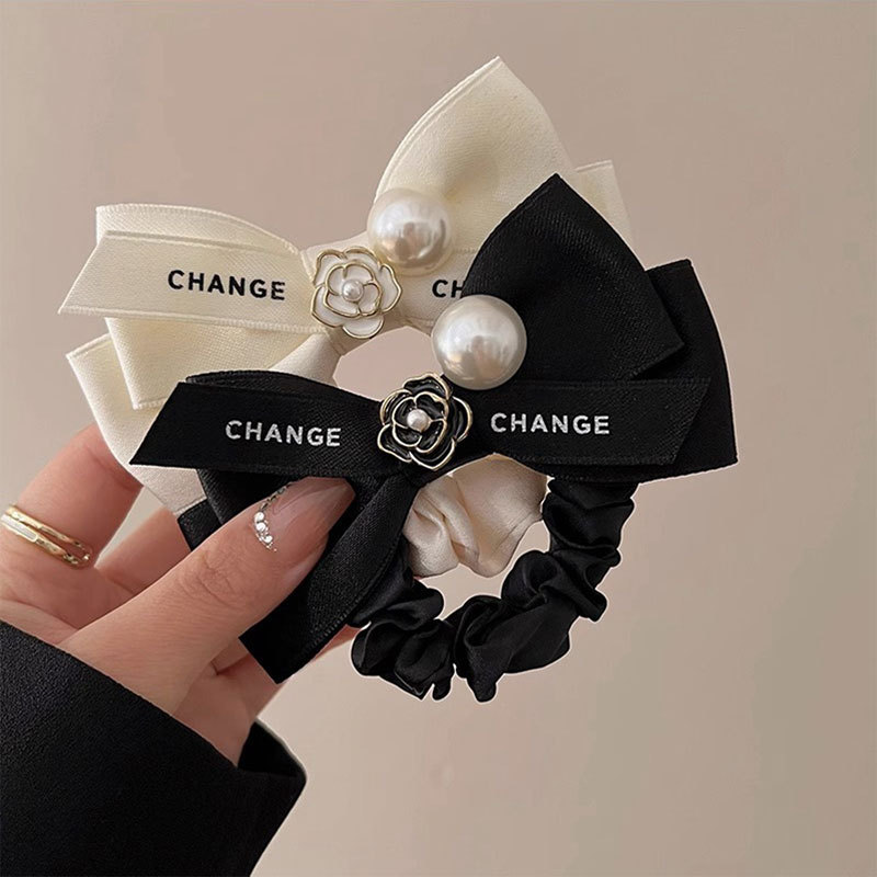 法式珍珠蝴蝶结小肠发圈气质马尾头绳皮筋扎头发绳不伤发网红头饰