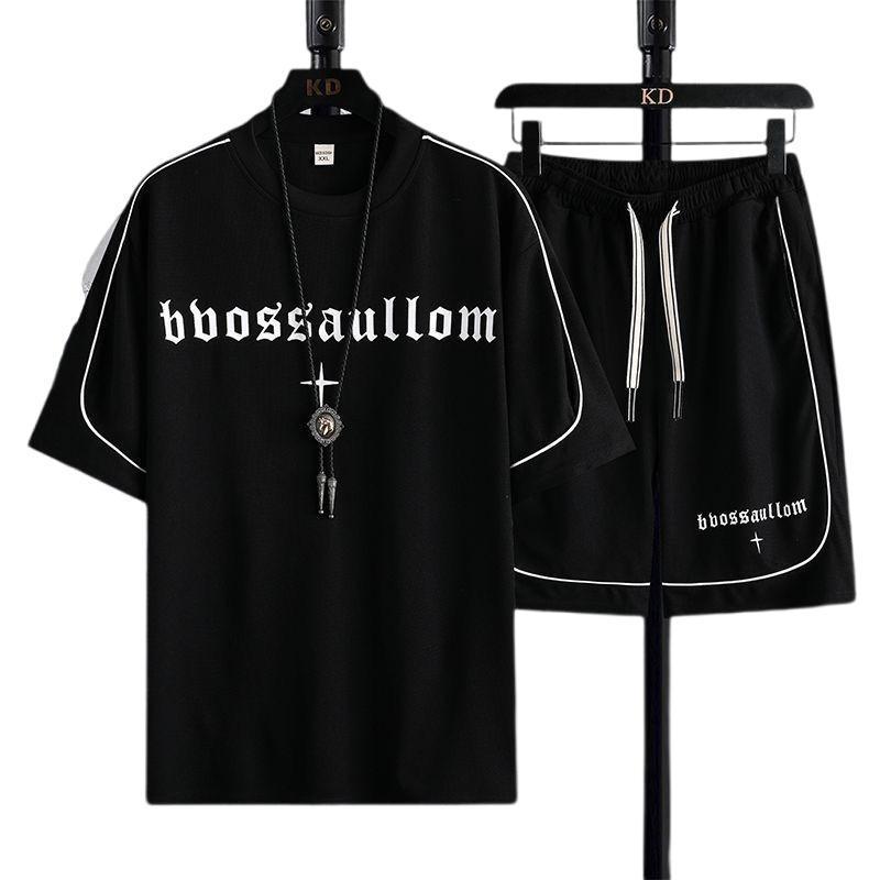 夏季短袖短裤套装男生夏季新款宽松休闲舒适帅气潮牌个性百搭套装