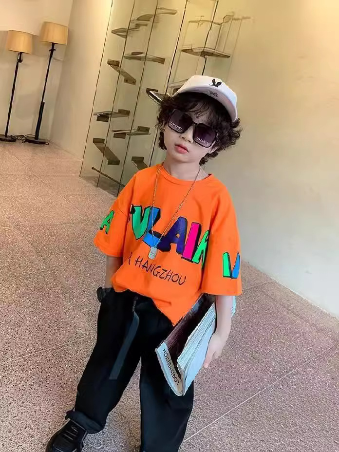 外贸纯棉儿童短袖新款洋气夏装韩版宽松休闲T恤中童潮牌上衣半袖