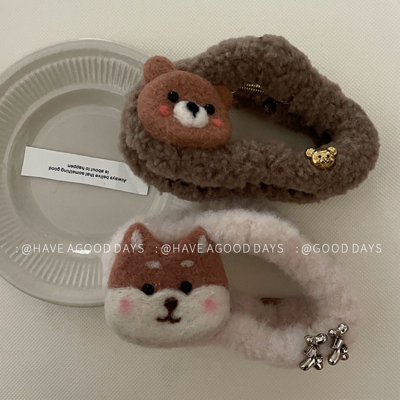 可爱毛绒小熊秋田犬儿童发夹秋冬新款小众发饰头饰马尾夹简约时尚
