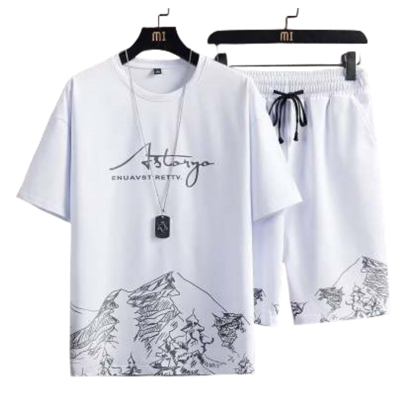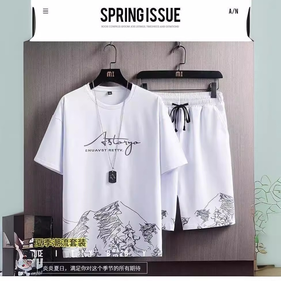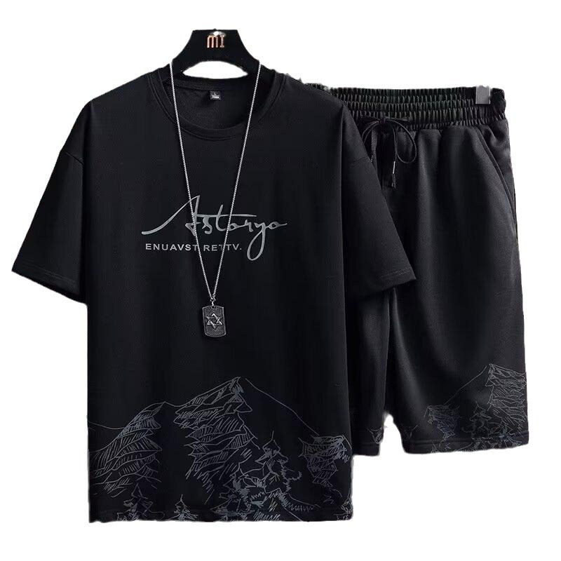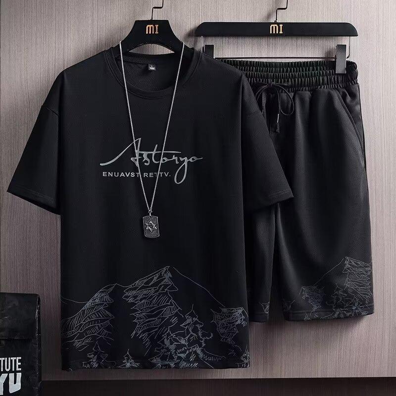 短袖t恤男士夏季新款潮牌新款一套搭配帅气运动短裤时尚套装
