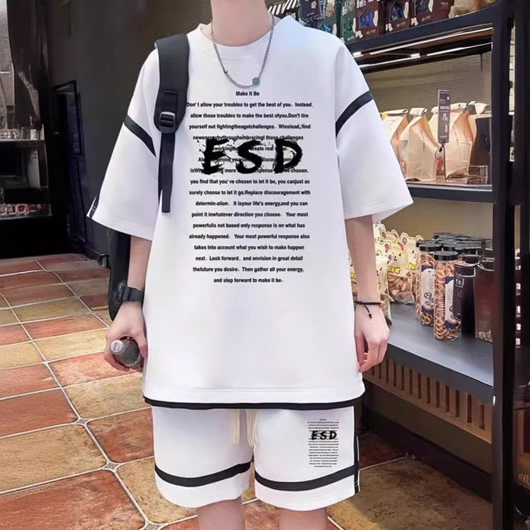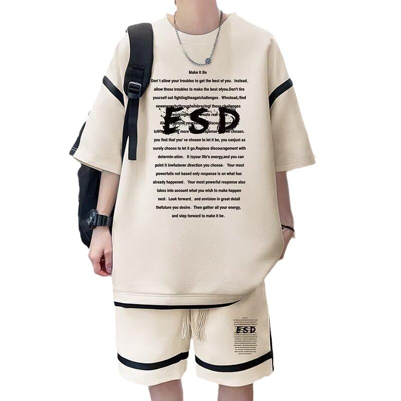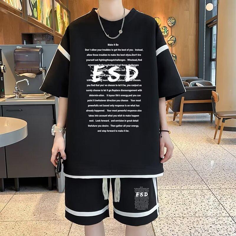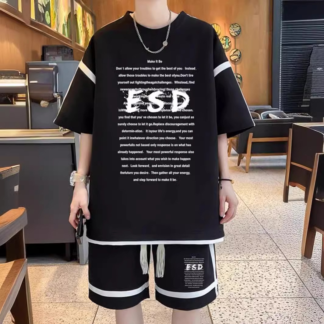 短袖t恤男士夏季新款凉感透气速干休闲宽松运动短袖短裤两件套装