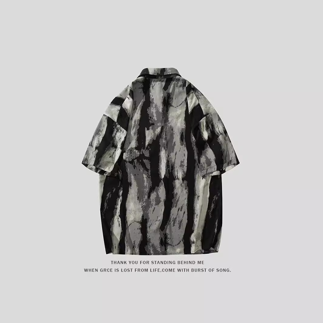 沙滩套装男生夏季新款扎染花衬衫短袖短裤高级感英伦雅痞搭配一套