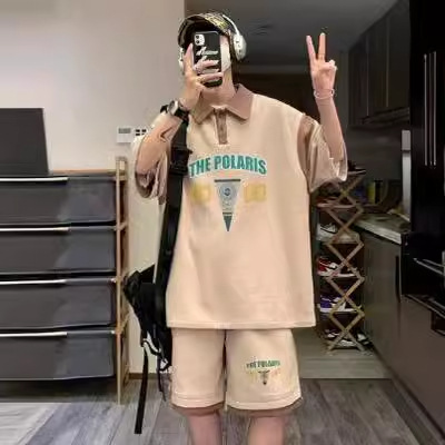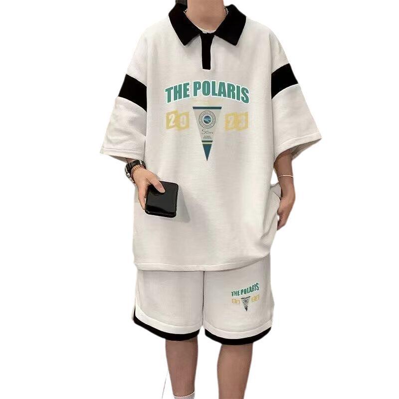 华夫格Polo衫短袖t恤套装男生夏季潮牌风一套搭配帅气上衣运动服