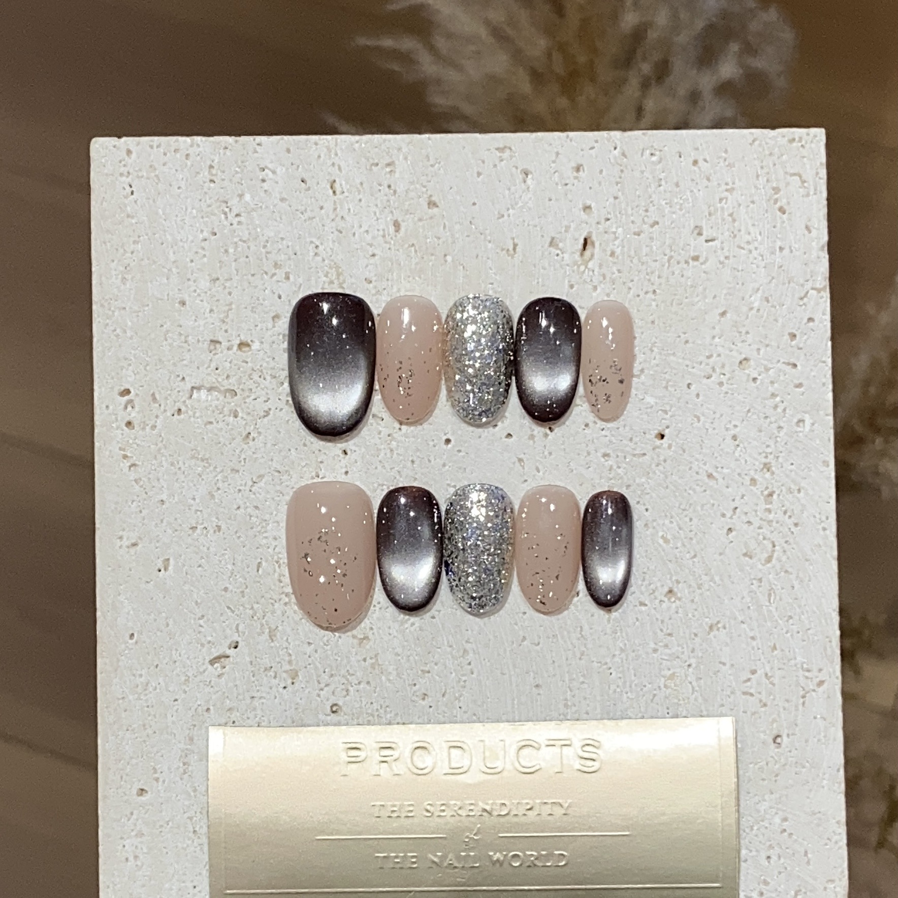 一只顾美甲 纯手工黑色跳猫眼银色亮片银河流星可拆卸穿戴甲