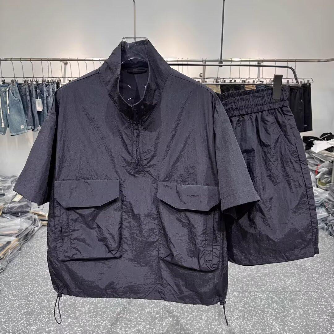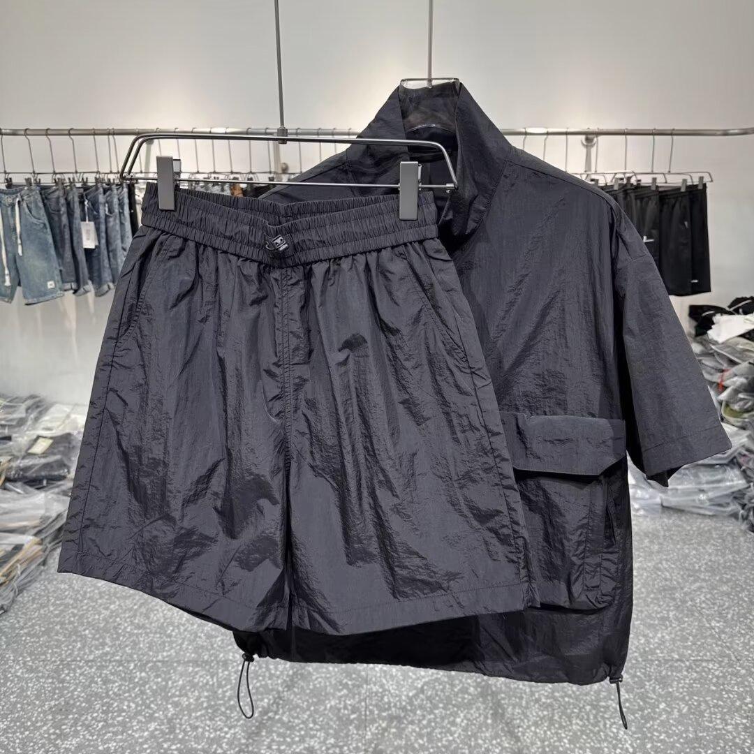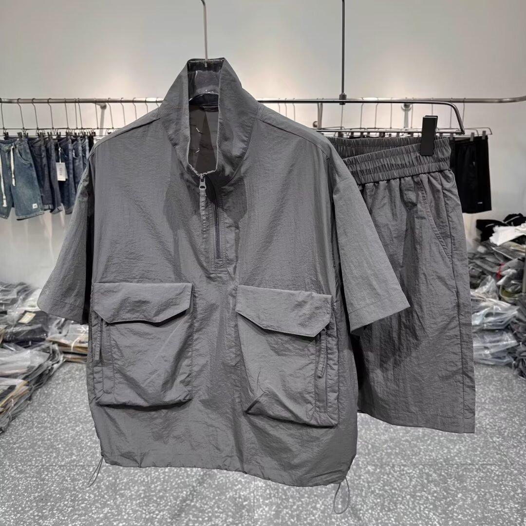 夏季新款速干轻薄短袖工装套装宽松简约风透气夹克短袖短裤两件套