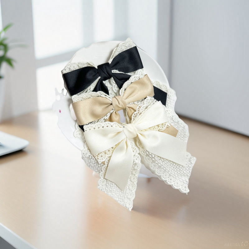 韩版蕾丝蝴蝶结发夹女时尚优雅后脑勺弹簧夹马尾顶夹温柔百搭发饰