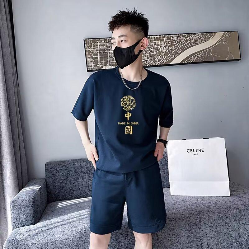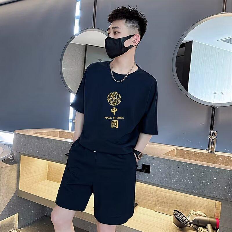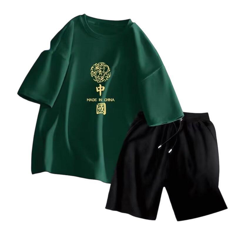短袖t恤男生夏季休闲套装潮流ins帅气学生一套搭配短袖短裤两件套