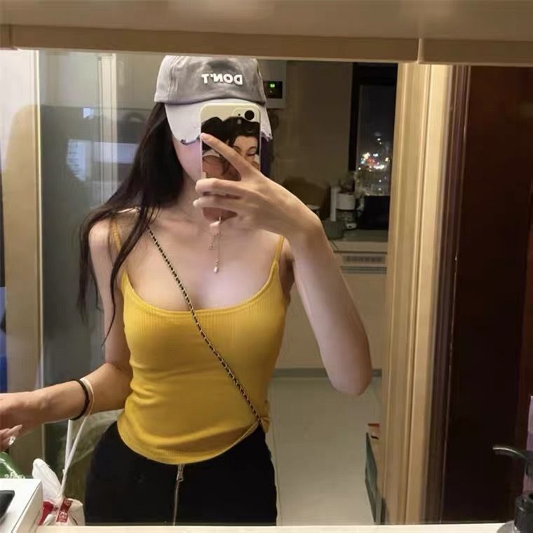纯欲辣妹上衣女2025年春夏百搭修身显瘦小背心姜黄纯色小吊带