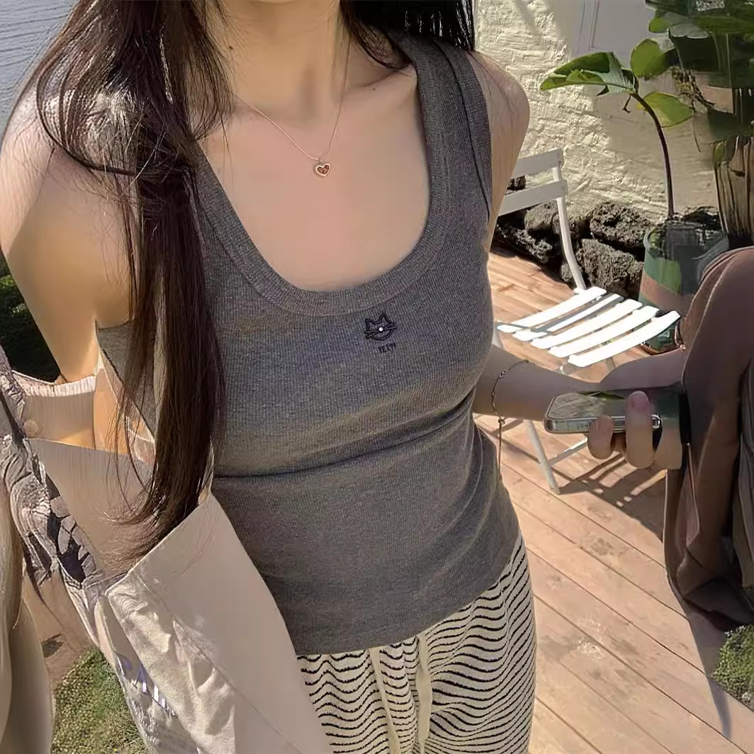 螺纹基础款猫咪印花背心女2025新款夏季甜辣纯欲修身百搭外穿上衣