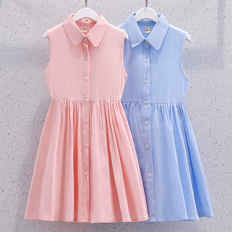 女童裙子夏装新款学院风洋气小女孩薄款背心裙夏季无袖连衣裙