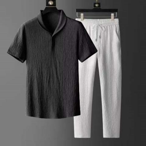 休闲套装男生夏季新款薄款高端运动套装时尚短袖长裤潮流轻奢套装