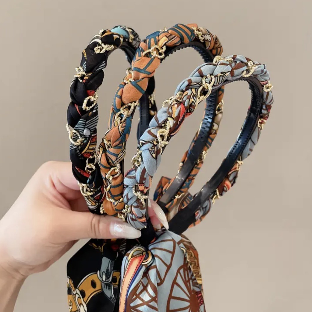 复古链条飘带发卡发箍女编发一体系带头箍夏天头饰头饰发箍手工