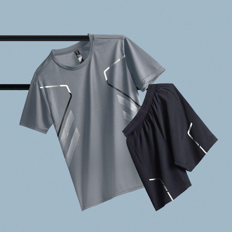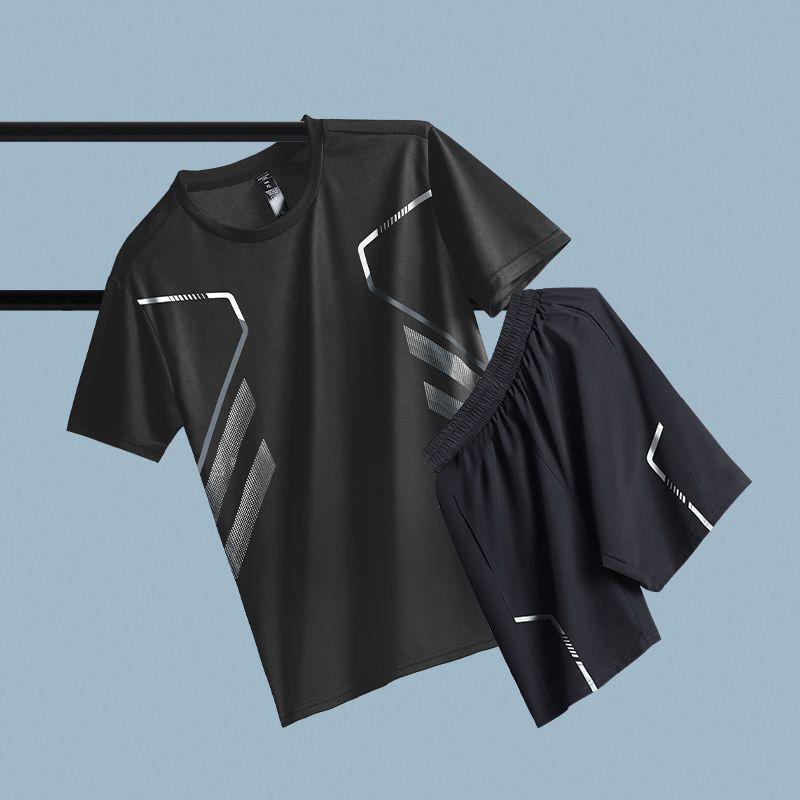 运动套装男生夏季新款速干跑步健身短袖短裤休闲一整套时尚运动服