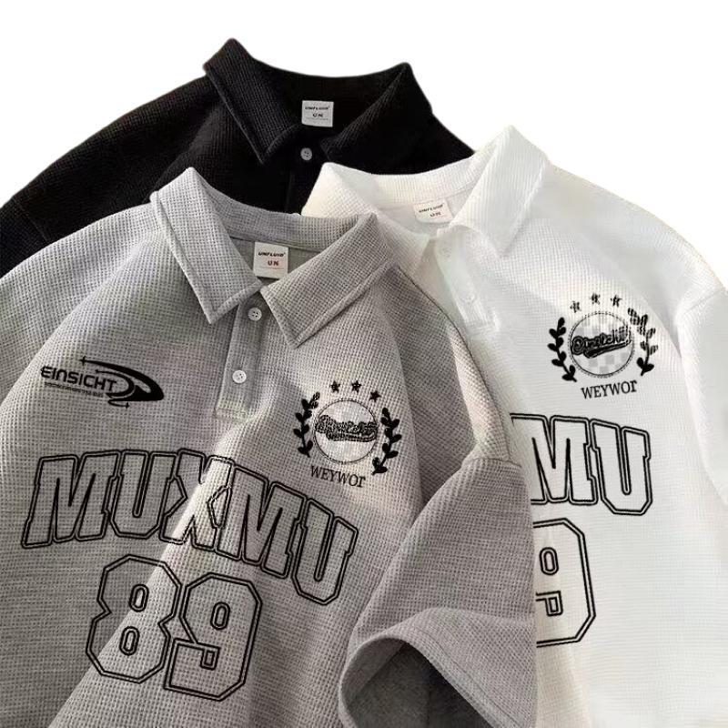 夏季潮流宽松休闲POLO短袖港风五分袖撞色翻领T恤控新款
