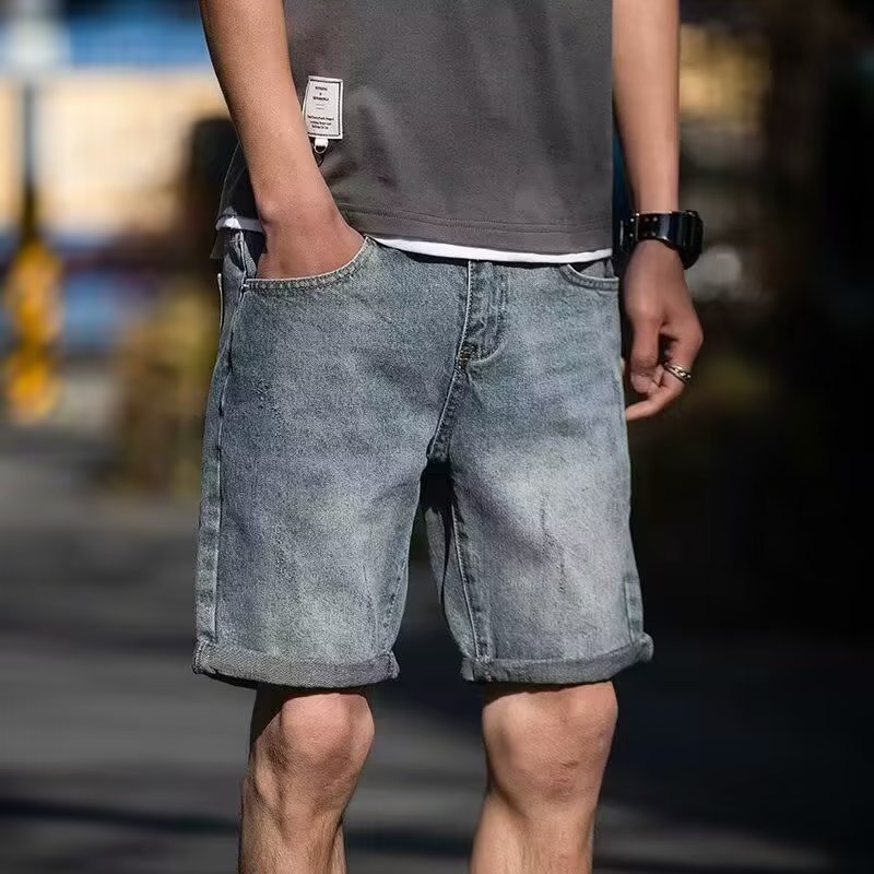 牛仔短裤男ins欧美潮流百搭中裤夏季薄款直筒休闲工装五分裤