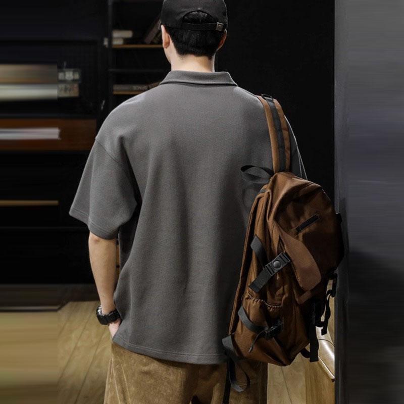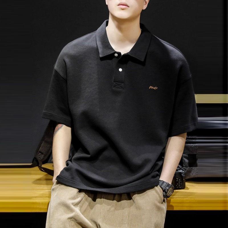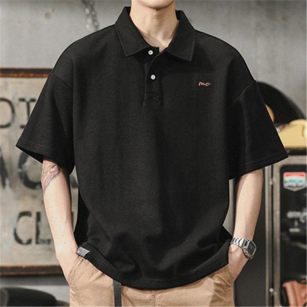 翻领短袖polo衫男士夏季美式痞帅休闲宽松凉感半袖体恤上衣ins潮