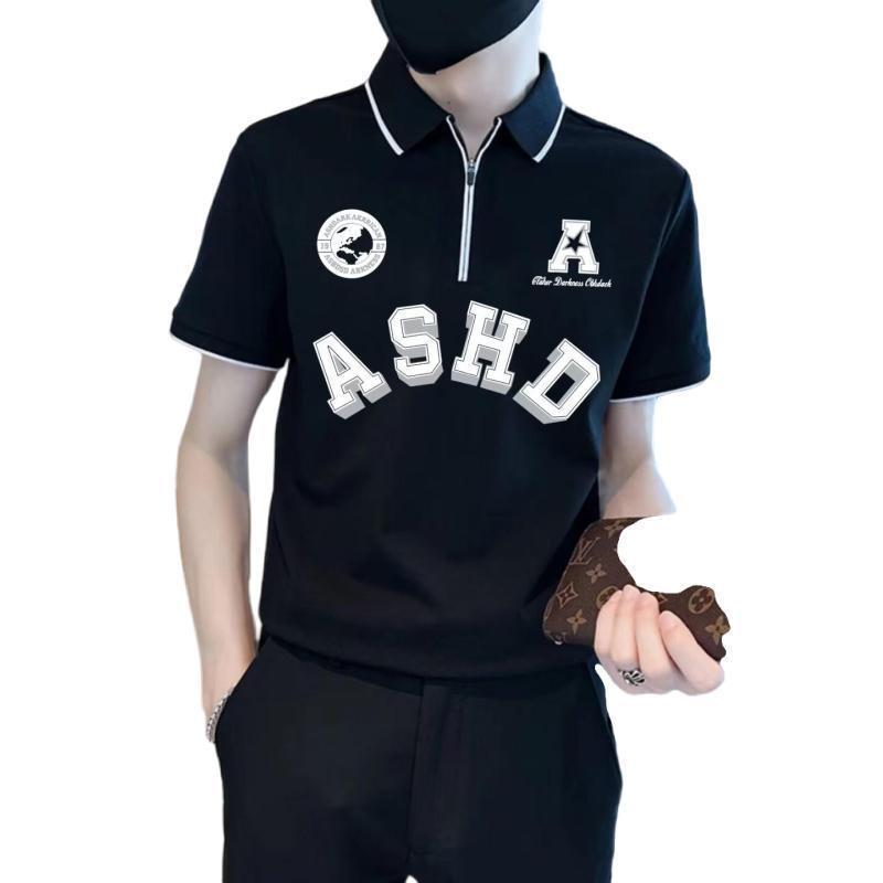 半拉链polo衫短袖t恤男生夏季新款美式复古潮牌风宽松半袖体恤衫