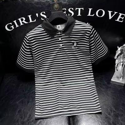 条纹polo衫短袖男生夏季新款宽松潮流时尚百搭半袖休闲上衣服