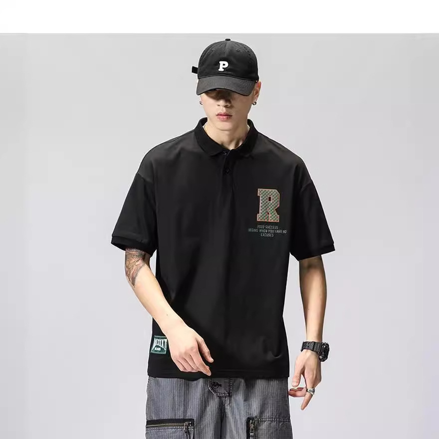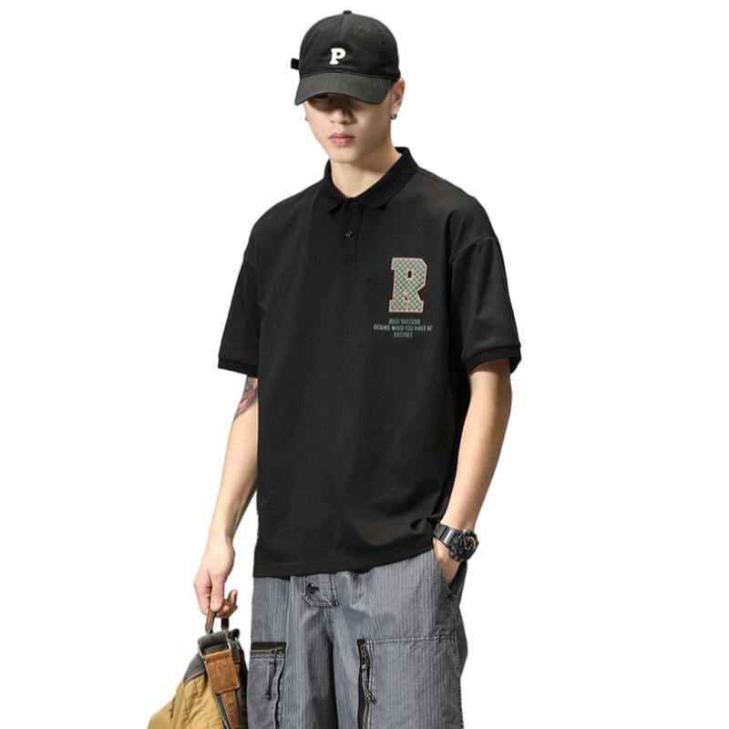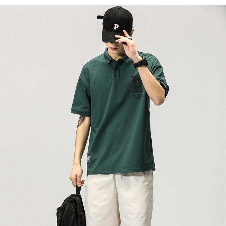 日系polo衫短袖T恤男夏季新款设计感小众宽松高级感痞帅翻领上衣