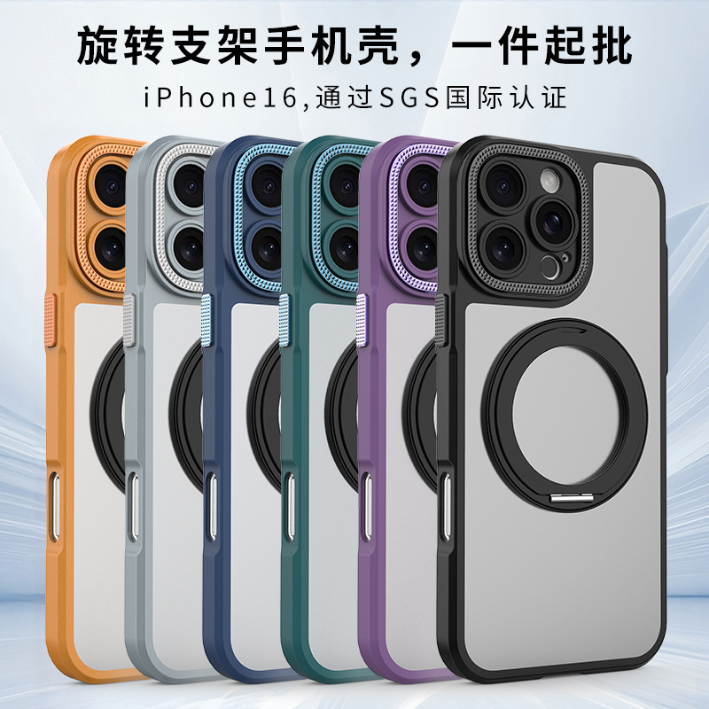 适用苹果系列手机壳360旋转支架iPhone16磨砂磁吸壳三星S25手机壳