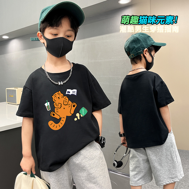 男童短袖夏季新款中小童男孩洋气夏装儿童半袖休闲宽松圆领T恤潮