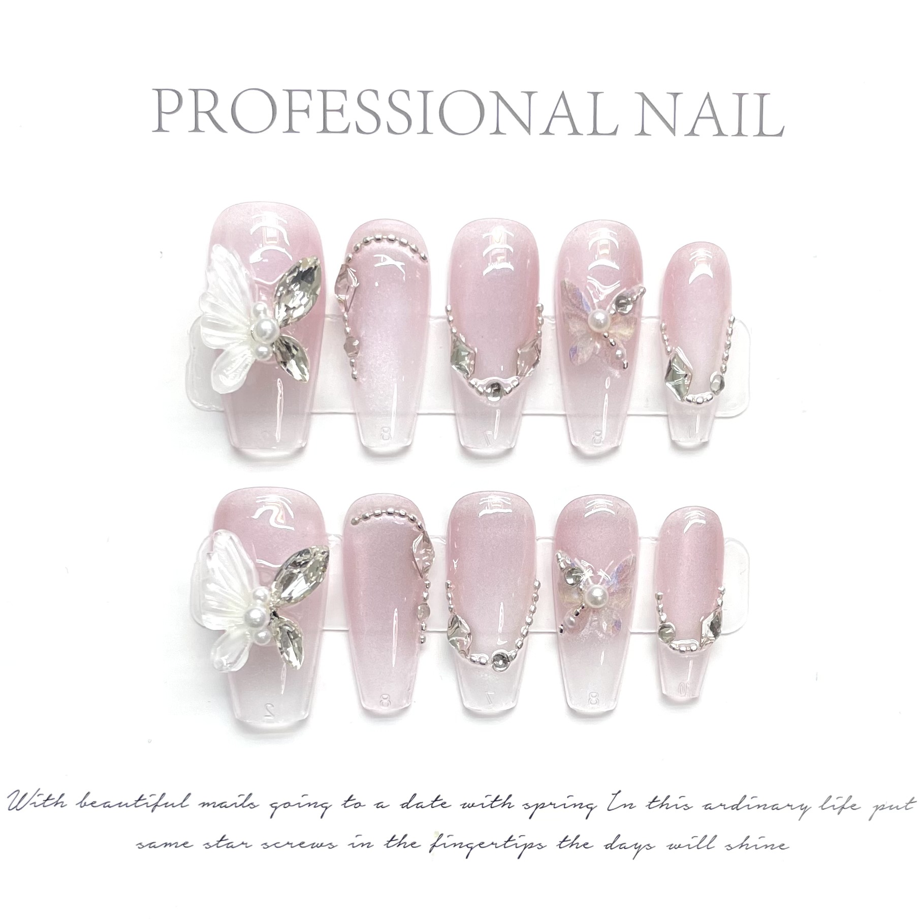 玉蝶浮影纯手工穿戴甲高端光疗气质显白美甲可拆卸成品假指甲贴