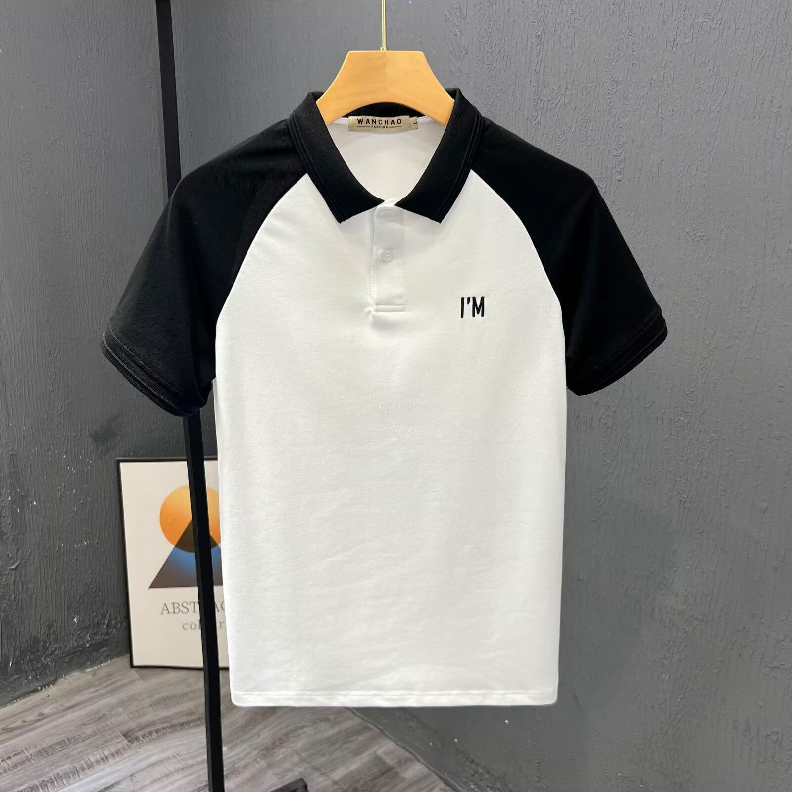 有领短袖t恤男士夏季新款潮牌ins百搭时尚宽松潮流显瘦拼色polo衫