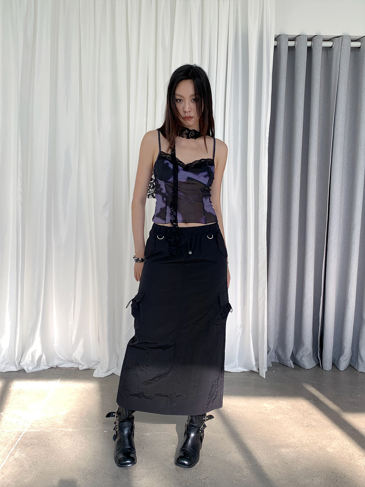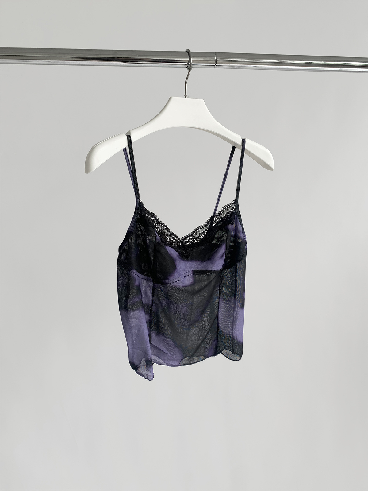 韩系时髦穿搭扎染印花露背吊带背心蕾丝网纱内搭无袖短上衣