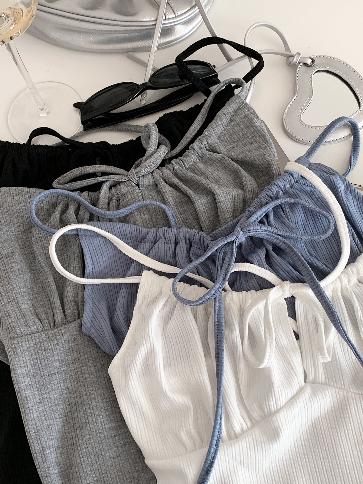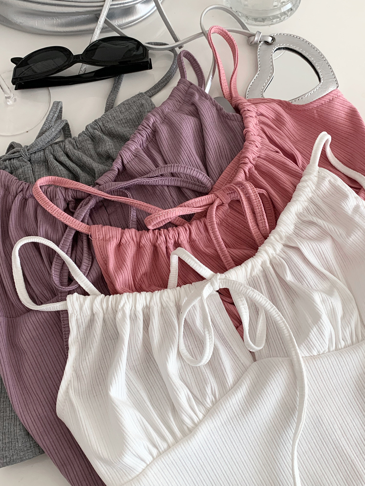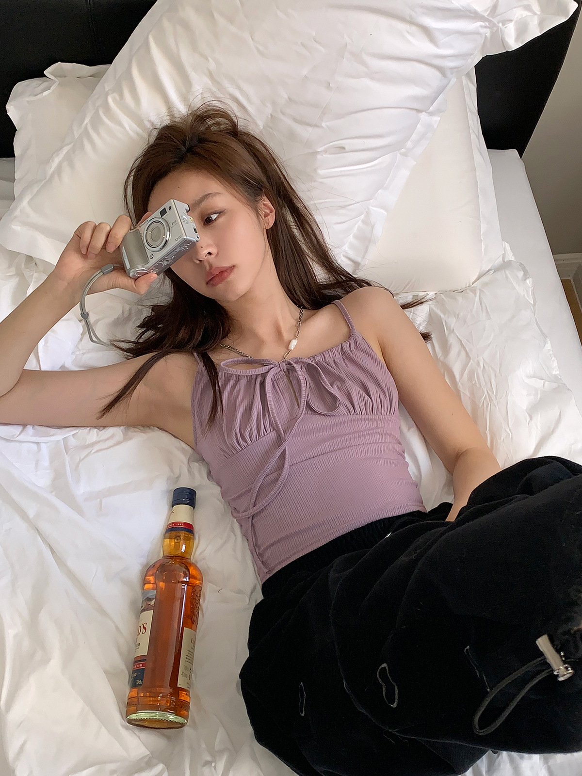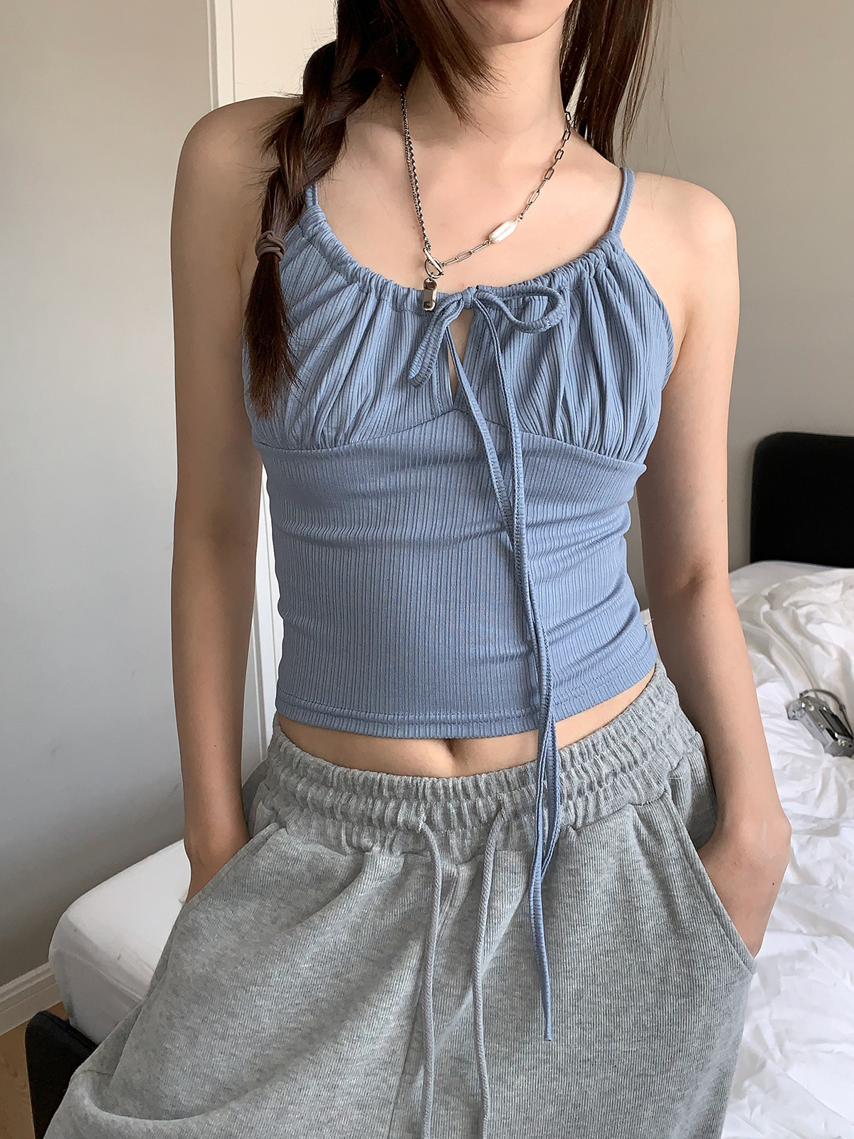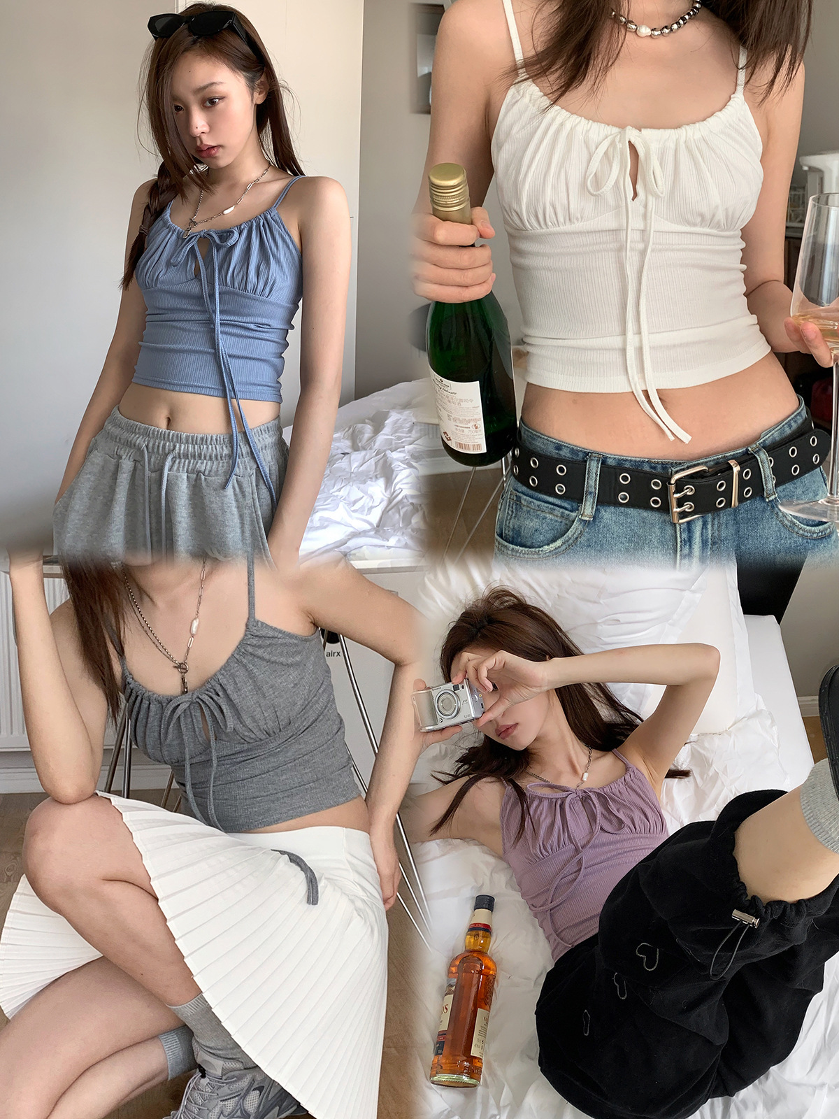 多色入 韩国休闲系带无袖吊带修身短款露脐小背心女