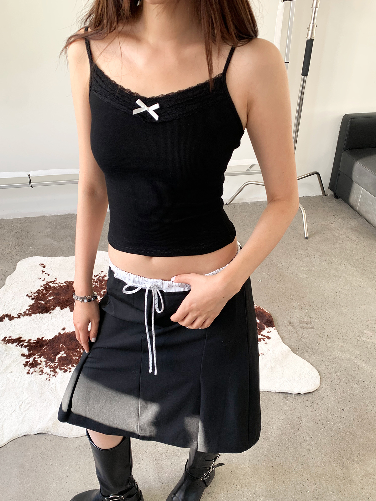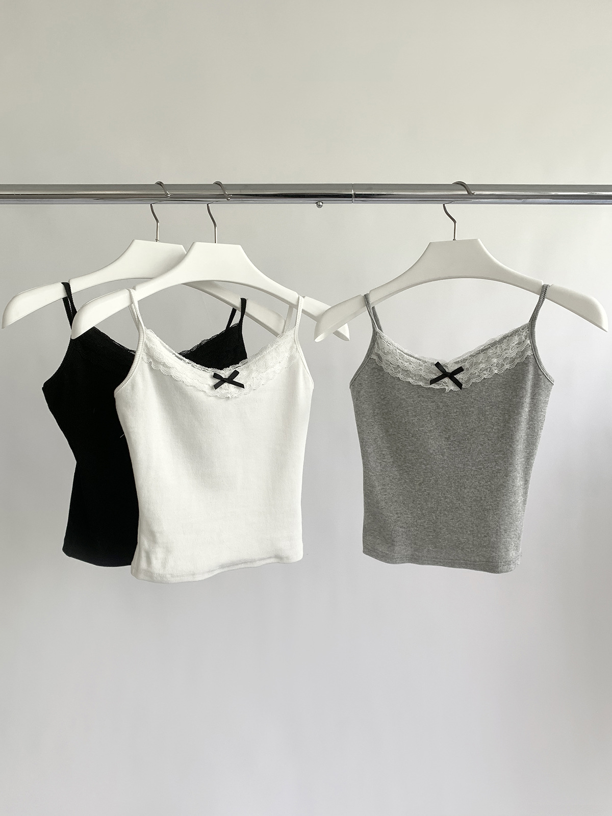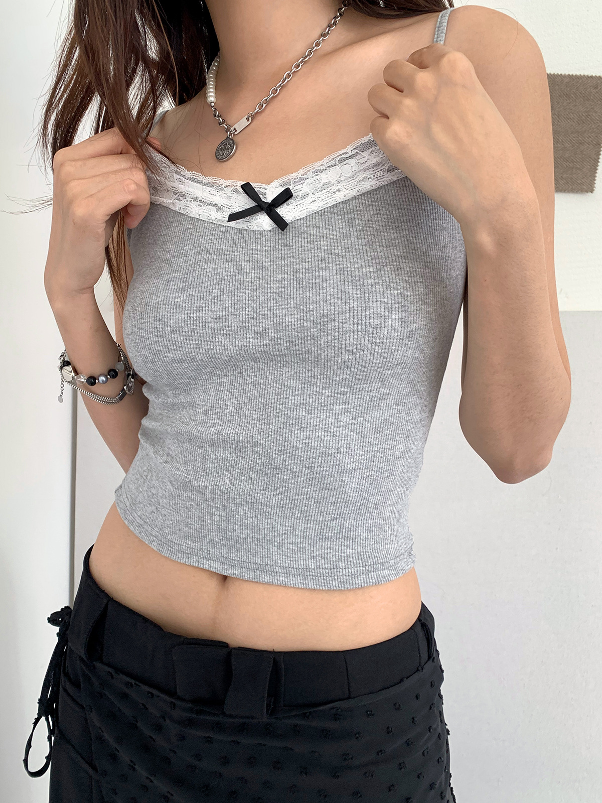 夏季新品韩国蝴蝶结蕾丝拼接吊带背心修身短款显瘦短款上衣