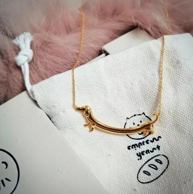 金色腊肠狗可爱百搭项链网红同款时尚个性锁骨链小众简约颈链礼物