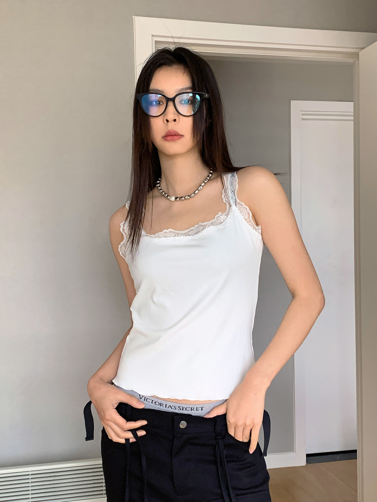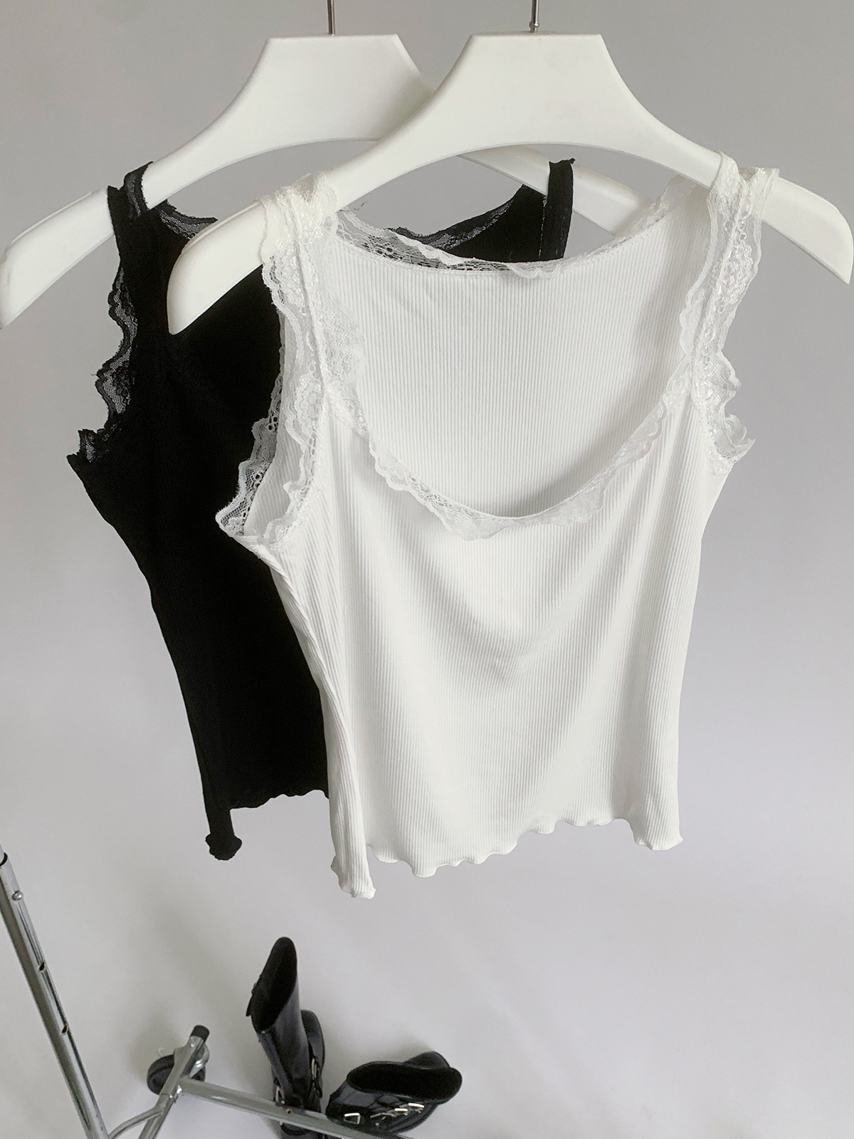 基础款小心机蕾丝花边拼接弹力修身螺纹吊带背心打底