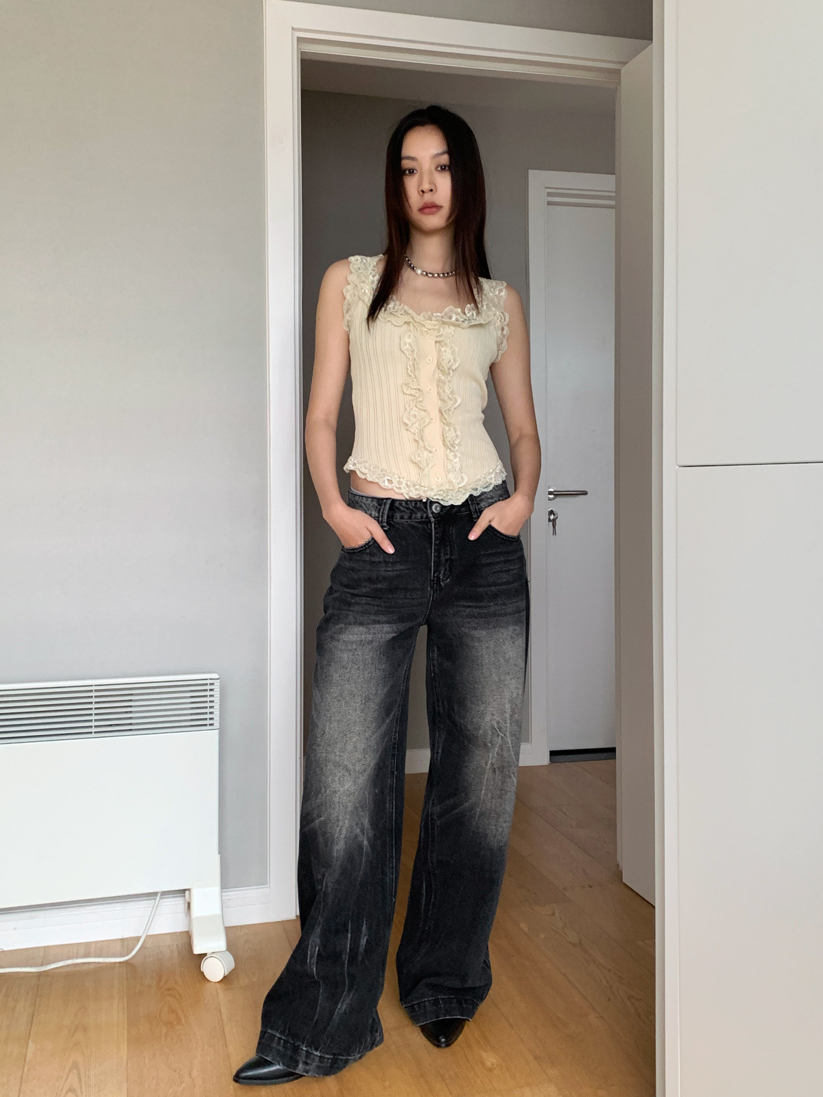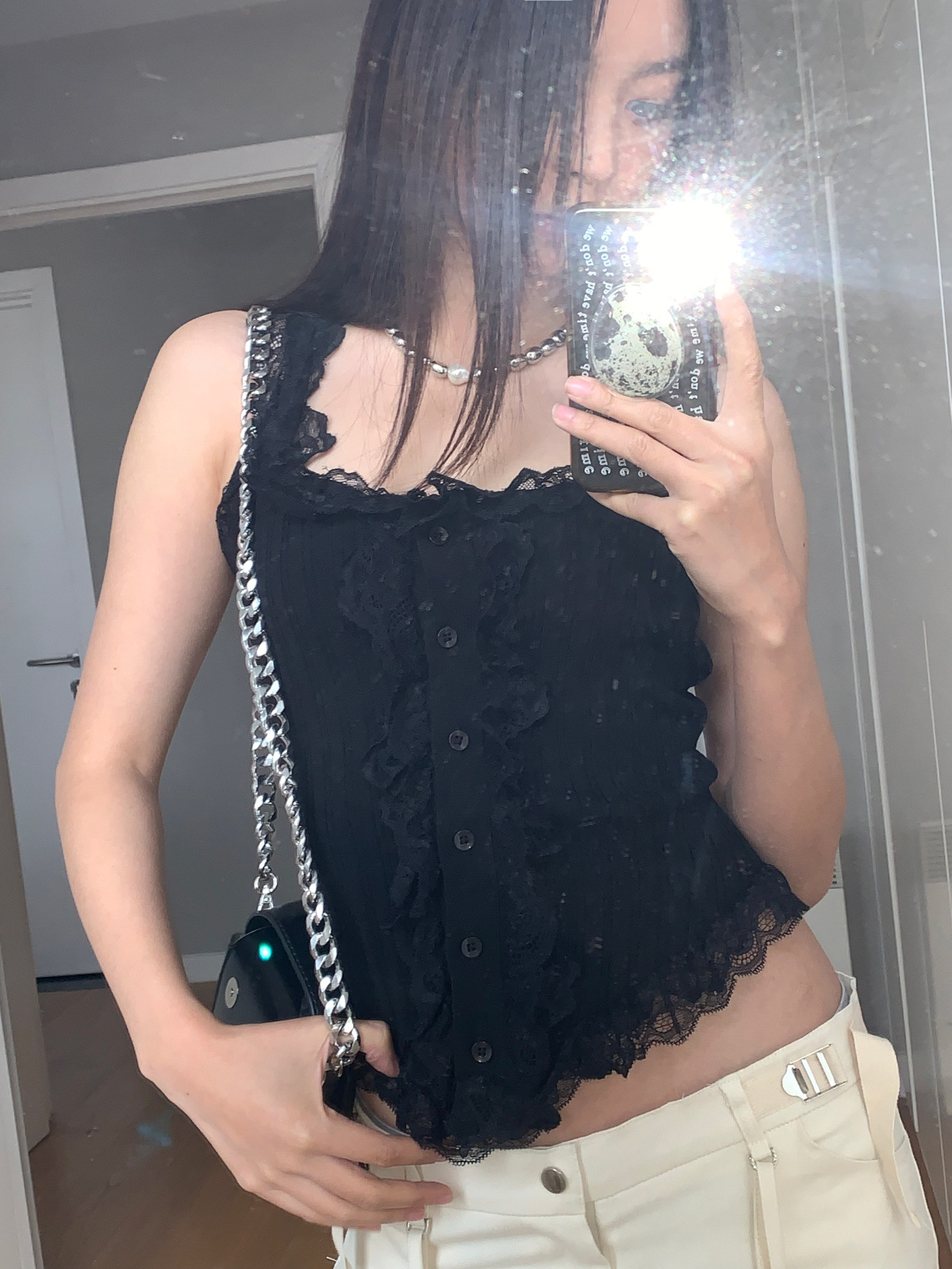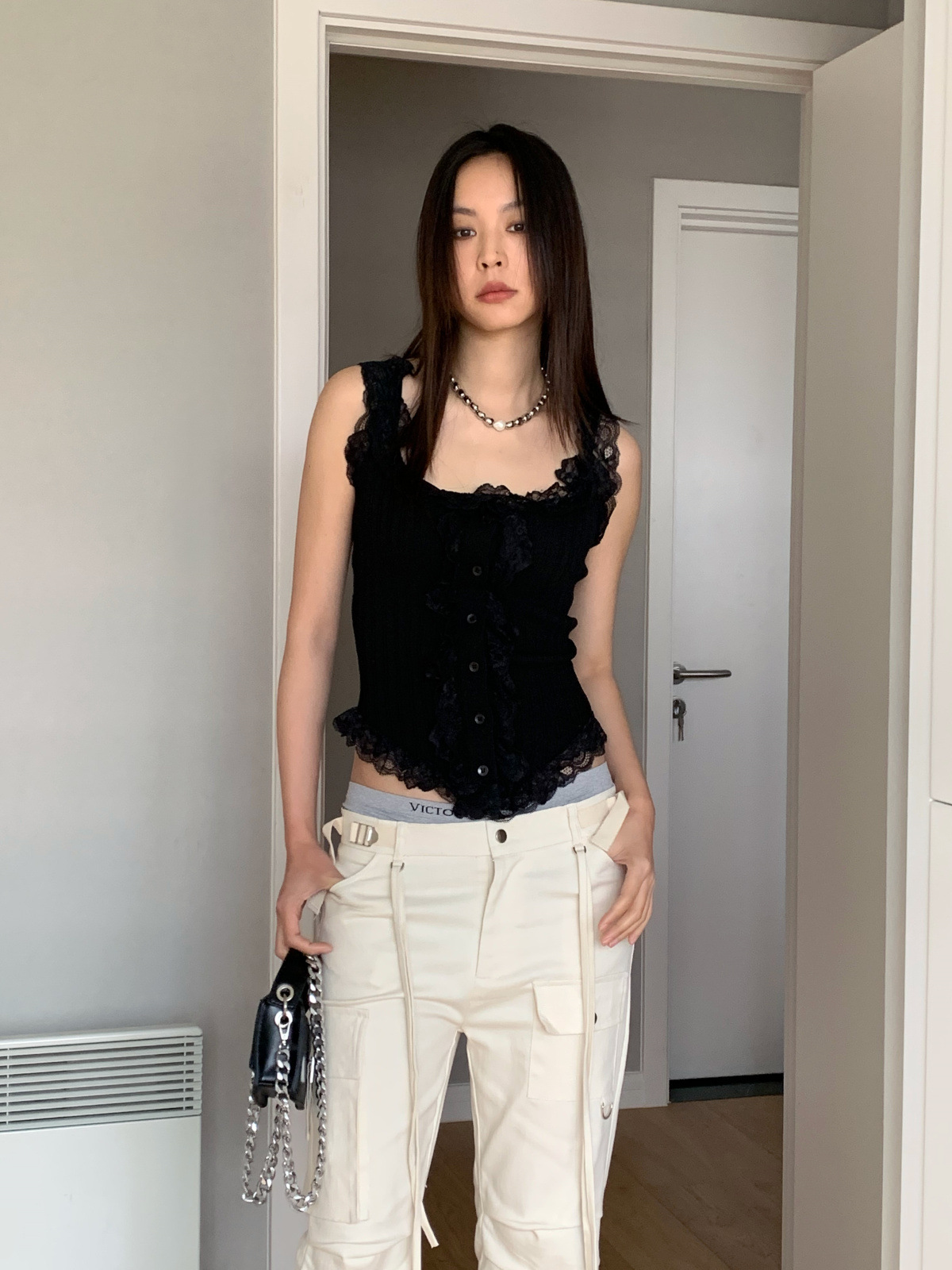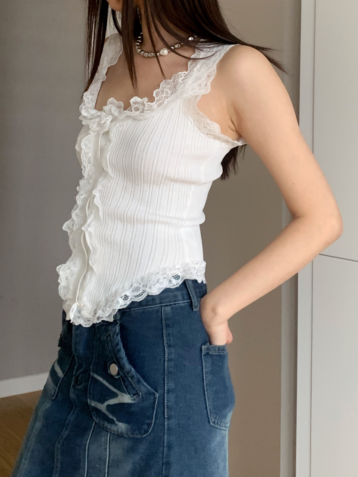 设计感蕾丝花边针织开衫吊带背心女纯欲辣妹短款上衣