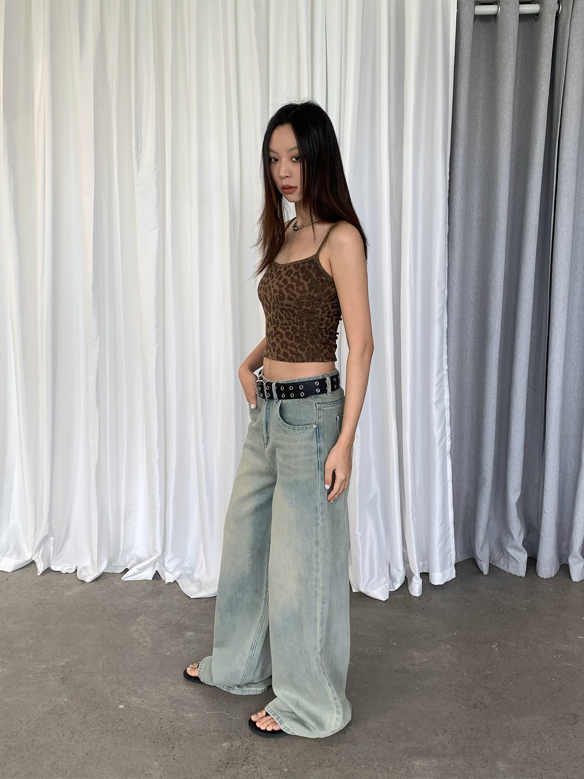 夏季豹纹针织小吊带背心女辣妹紧身打底衫短款上衣